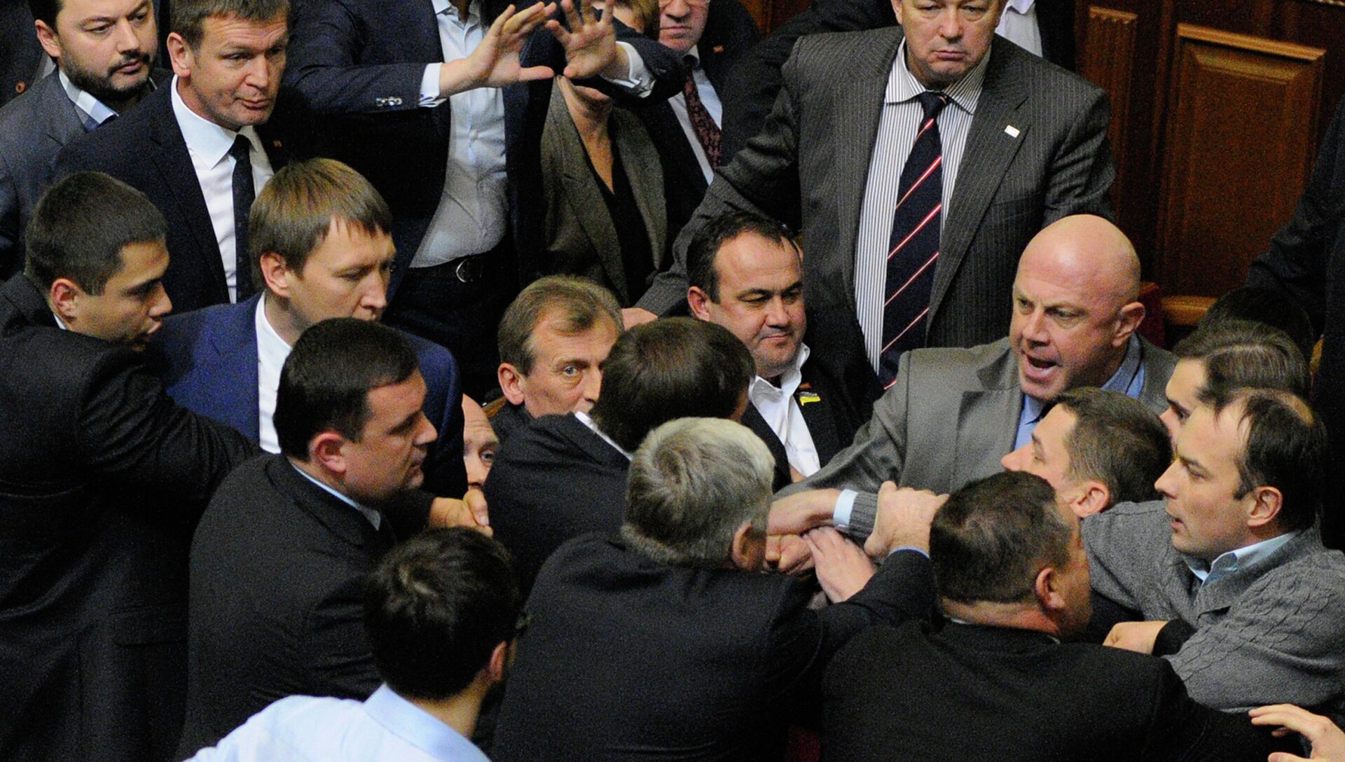 После голосования за постановление о составе парламентских комитетов самовыдвиженец Владимир Парасюк выбежал с трибуны и начал что-то угрожающе кричать в сторону представителей "Блока Петра Порошенко". Кто-то толкнул бунтаря, завязалась потасовка. На помощь Парасюку подоспели внефракционные депутаты, среди которых был замечен лидер "Правого сектора" Дмитрий Ярош. Накал страстей понятен, ведь дележ портфелей, полномочий и должностей – этот как раз то, чем последнее время в приоритетном порядке занимается новая старая украинская власть, отодвинув на второй план проблемы, с которыми столкнулась страна.