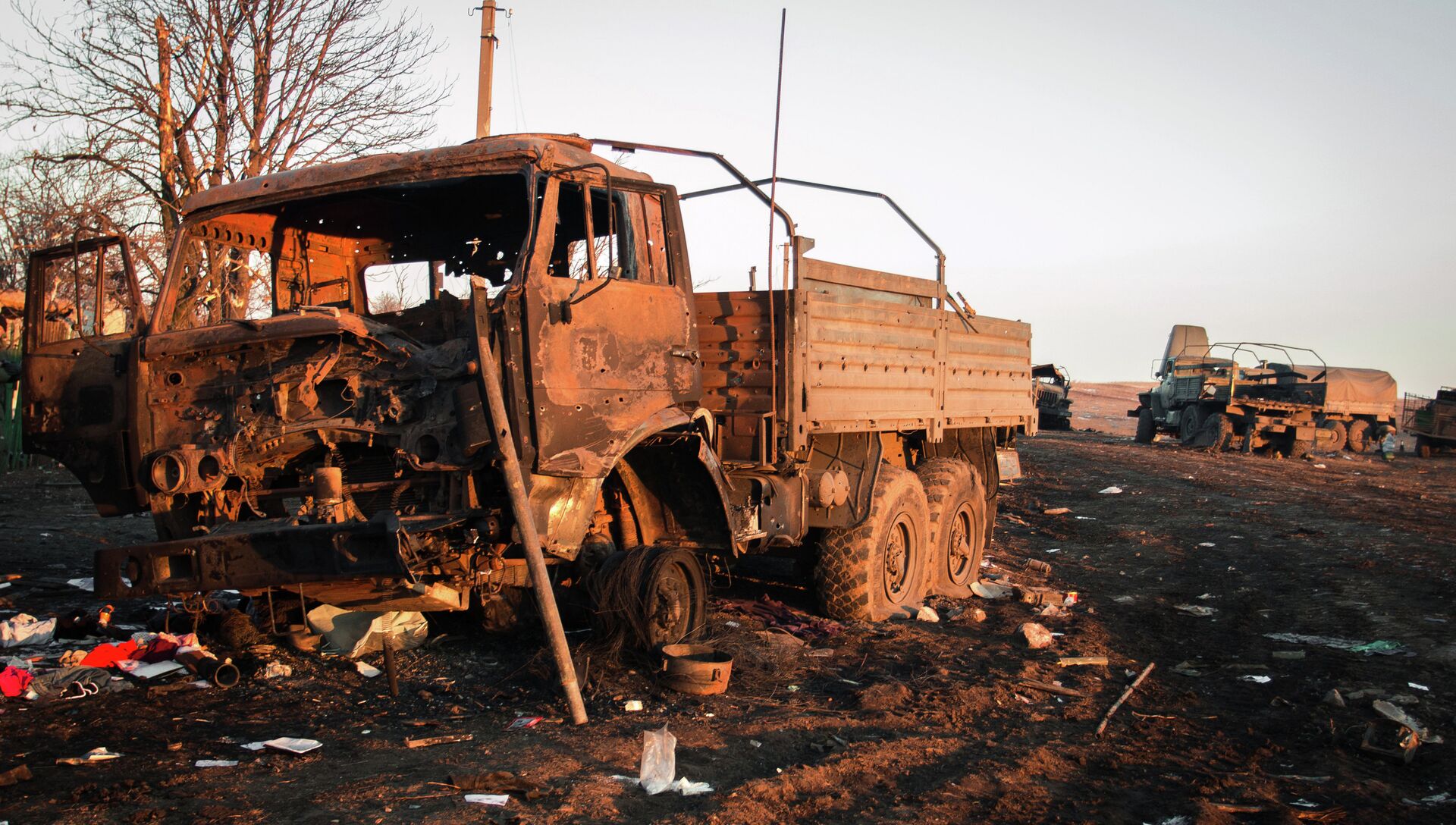 © РИА Новости / Дэн Леви | Перейти в медиабанкУничтоженная украинская военная техника во время боевых действий в поселке Логвиново на Донбассе