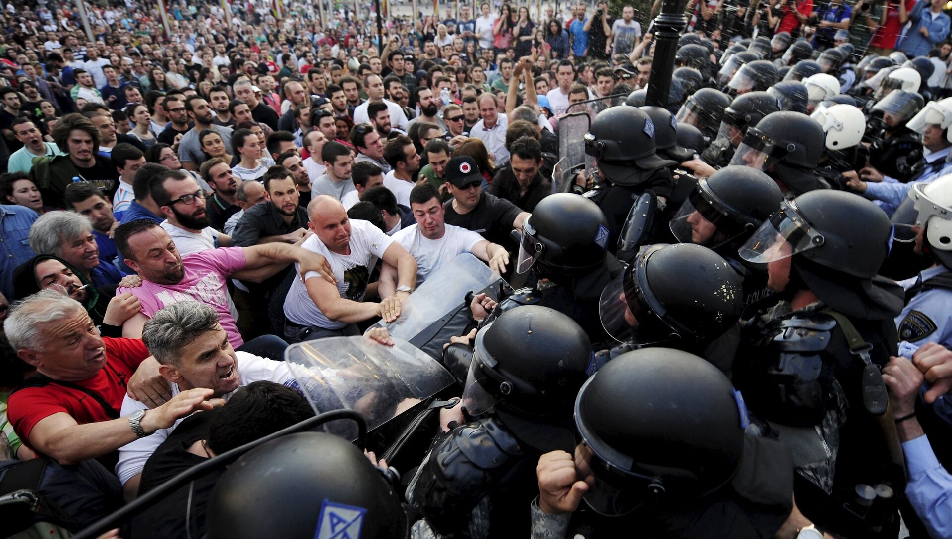 "Схема одна и та же. На днях одна из ведущих македонских газет сделала фотомонтаж: что было в Киеве и что происходило в последние дни в Македонии. Получилась практически калька: те же плакаты, те же призывы", – сказал в эфире радио Sputnik Константин Качалин.