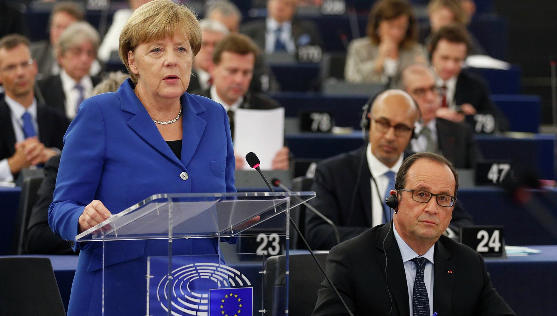 До них лидеры Франции и Германии делили трибуну Европарламента лишь однажды. В 1989 году. Франсуа Миттеран и Гельмут Коль в Страсбурге тогда лично обратились к депутатам вскоре после падения Берлинской стены и незадолго до объединения ФРГ и ГДР. Так они, по сути, открывали новую Европу. Через 26 лет Меркель и Олланд фактически ее закрывают. Возможно, только на переучет. Оба призвали к "европейской солидарности". Потому и дуэтом, чтобы выглядеть ее олицетворением.