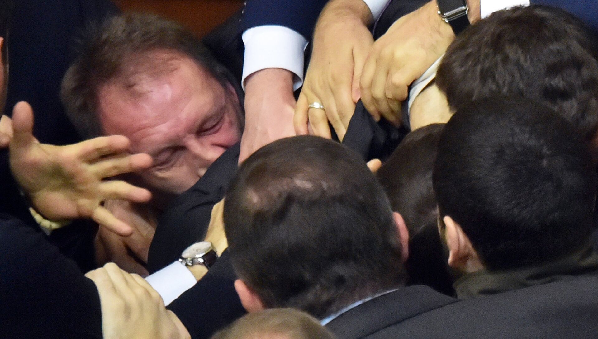 Где-где, а на Украине парламент так и не стал местом для дискуссий. Он больше похож на спарринг-площадку в эдаком спортивном смысле или на сливной бачок ненависти к России. Потасовки и массовые драки стали фирменным стилем "украинской парламентской демократии". Совсем недавно в законодательном органе врукопашную сошлись сторонники и противники Яценюка, одаренного букетом красных роз в траурной ленте. До этого во время ссоры депутат от "Народного фронта" Андрей Тетерук разбил бутылкой голову своей коллеге из партии Тимошенко Александре Кужель. И тут главное даже не в том, что дюжий мужик, экс-комбат карательного батальона "Миротворец" с депутатским мандатом "метелил" бутылкой даму. Украина, на которой Дарт Вейдер мог стать президентом, и не то видывала. Главное, пожалуй, в том, что в заявлении на сайте партии Тимошенко соратники Кужель потребовали ареста Тетерука и особо выпятили тот факт, что военное образование он получал в Москве. Так вот где собака "порылась": по традиции во всем виноват Кремль!