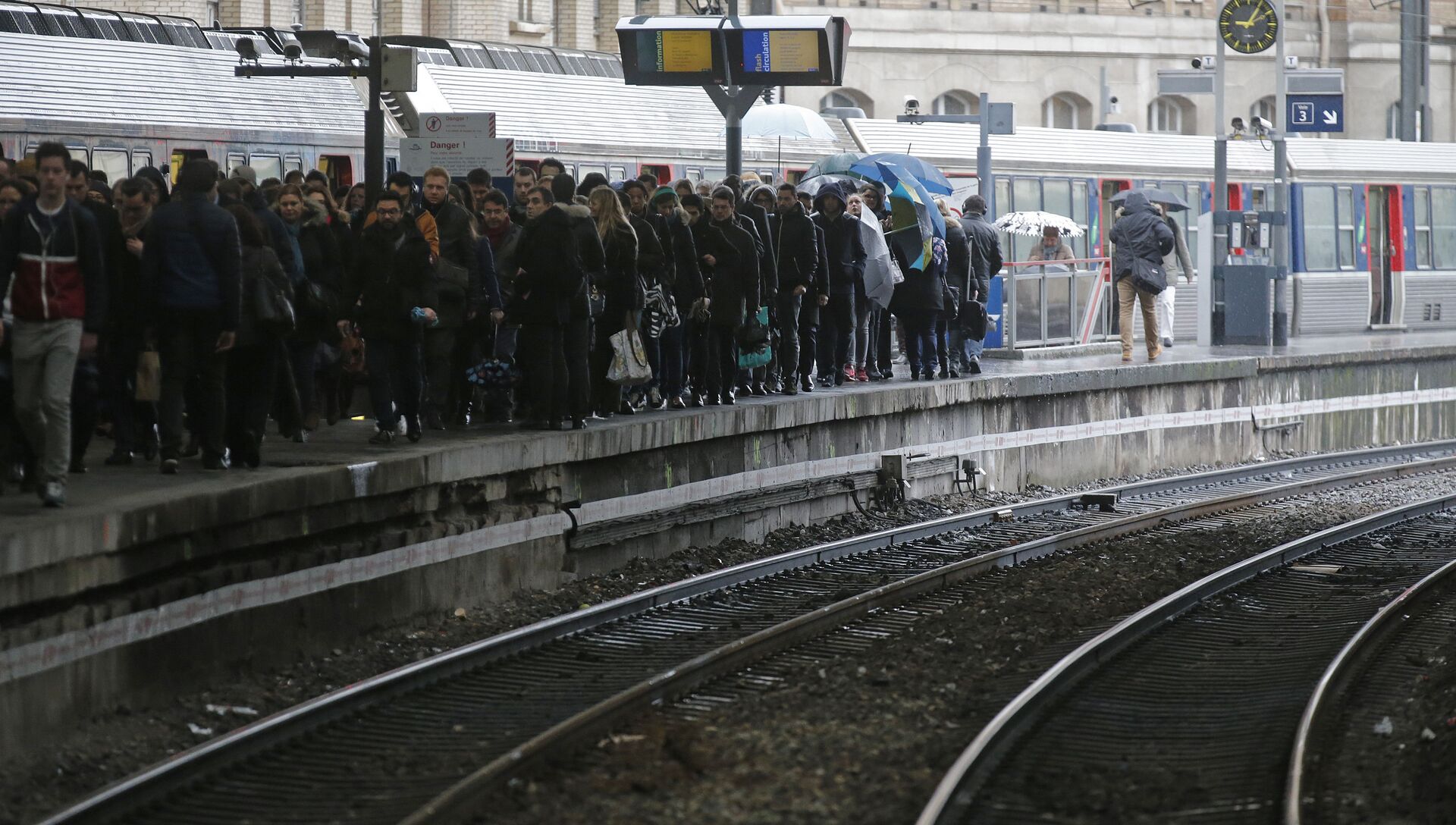 В Пятой республике началась бессрочная забастовка теперь еще и железнодорожников. Отменены около половины рейсов сверхскоростных поездов и примерно две трети междугородних экспрессов. В четверг на стачку выходят парижское метро и прочий общественный транспорт столицы. Движение будет, но с увеличенными интервалами. Длительное ожидание, перегруженные вагоны. Население пересаживается в личные автомобили. Но это – тоже не вариант. Шесть из восьми НПЗ либо закрыты, либо работают вполсилы. Власти распечатали стратегический неприкосновенный запас горючего. Все одно – не хватает.