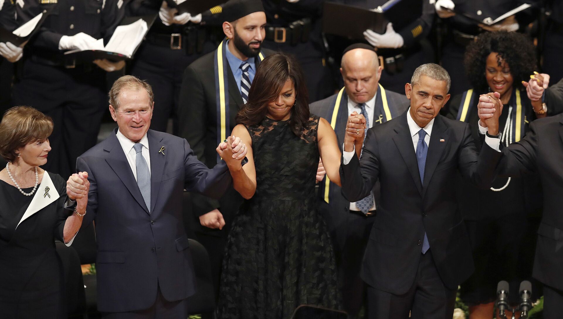 Джордж Буш-младший, по всей видимости, решил продолжить традицию американских президентов и станцевал. Правда, случай выбрал неудачно – страстная натура не удержалась от танцев на панихиде по убитым в Далласе полицейским.