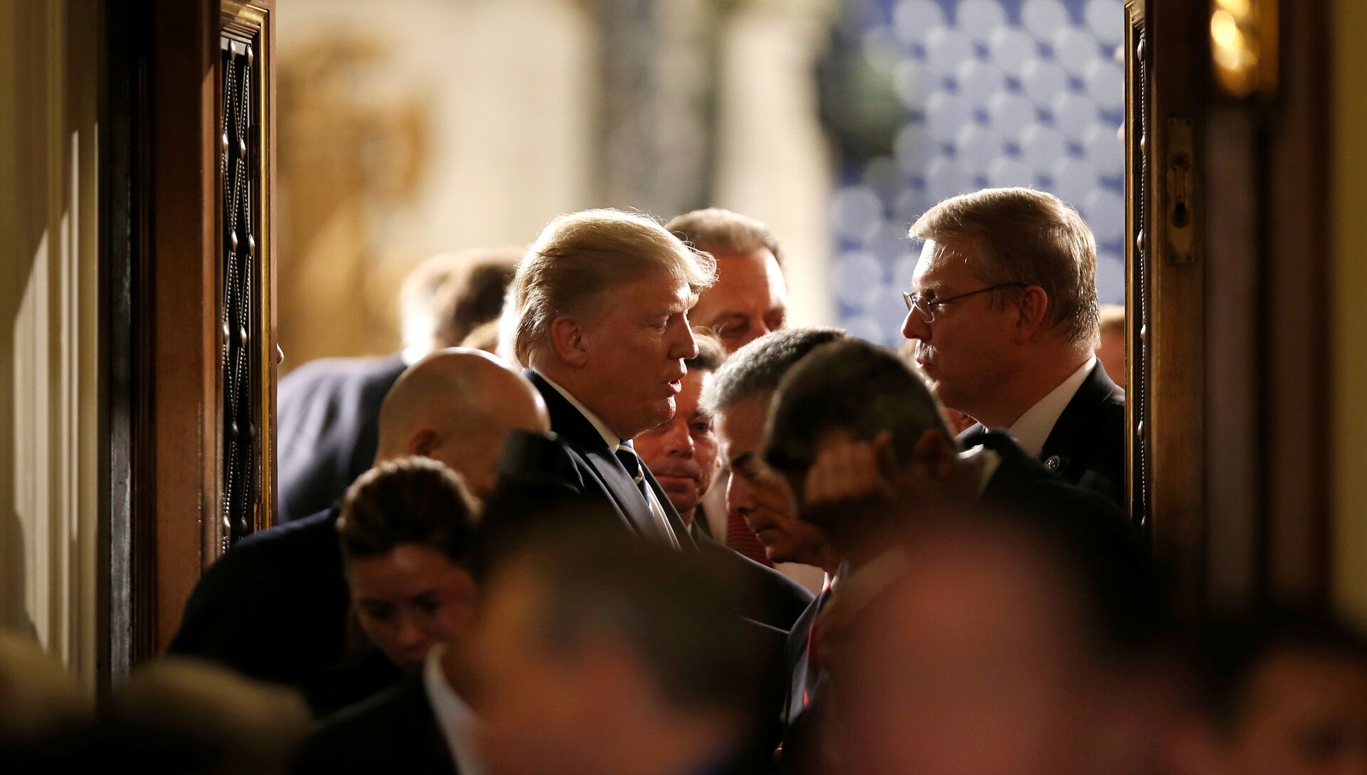 Президент США после речи перед палатами Конгресса в Вашингтоне. 28 февраля 2017 года