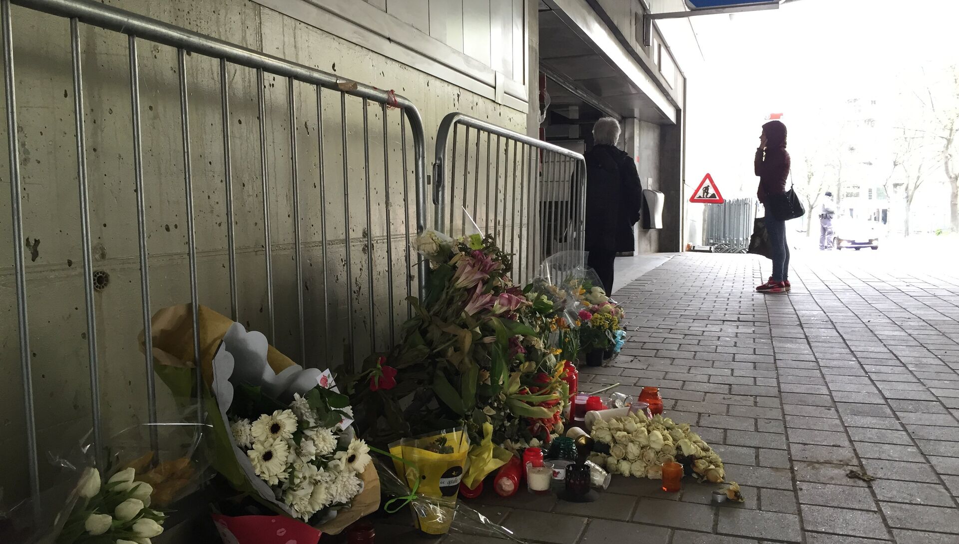 Цветы у входа на станцию метро Мальбек в Брюсселе, Бельгия