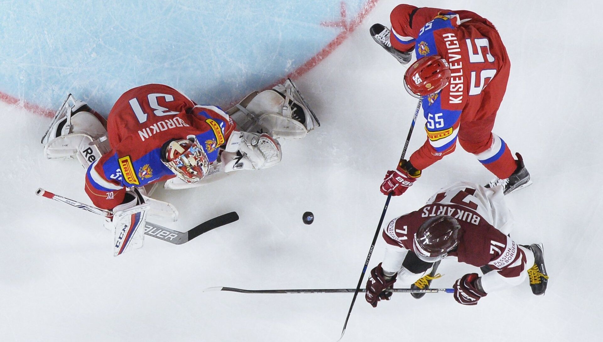 Приехал Улманис в Германию, пришел на хоккей, а зал – почти русский. Откуда их столько – непонятно, ведь в России голод и все дохнут. А тут немцы в них не стреляют, куда хуже – с ними обнимаются. Но самое отвратительное – еще и по-русски дублируют объявления. И диктор с тоталитарным голосом на чистом рязанском заявляет: шайбу в ворота сборной Латвии забросил… Это что еще за активная оборона в зоне нападения? Какой-то ад, форчекинг и Сибирь. Такой хоккей нам не нужен.
