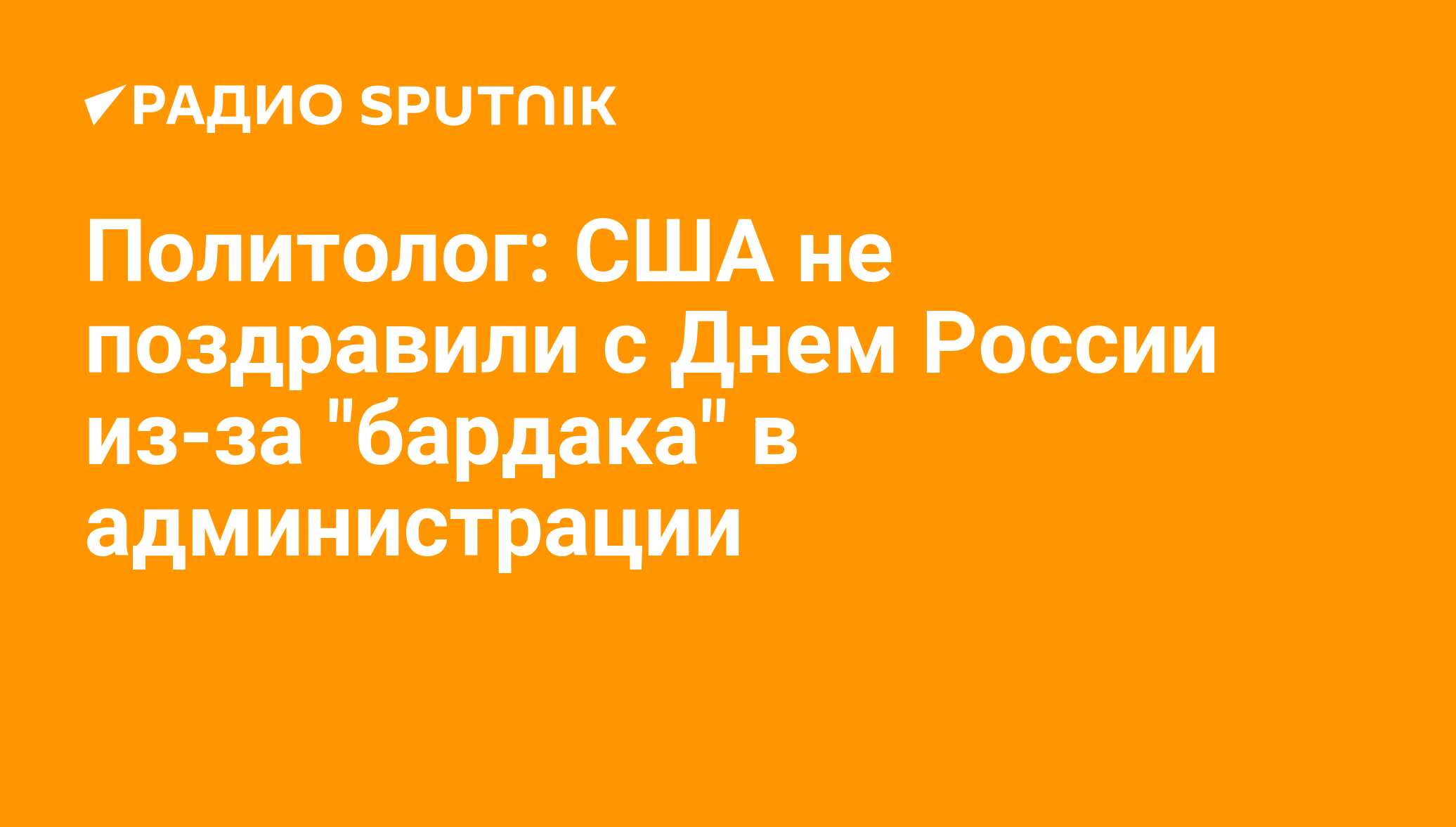 Директор Научно-исследовательского института политической социологии Вячеслав Смирнов в эфире радио Sputnik предположил, что отсутствие поздравления может быть связано с "чехардой" в американской администрации.