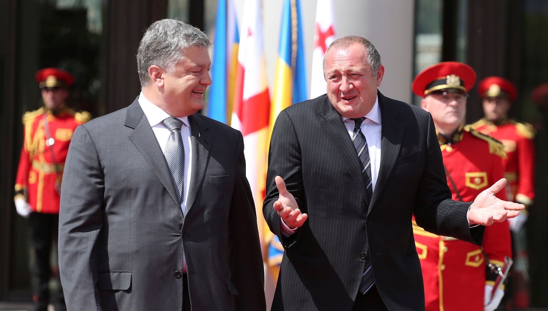 Петр Порошенко в поисках потенциальных союзников объездил, кажется, весь мир. Теперь вот добрался до друзей по несчастью. Посетил Грузию. В принципе, эти страны при всех различиях очень похожи и имеют немало схожих вех в истории. И Грузия, и Украина пожинают плоды своих так называемых революций. И у Киева, и у Тбилиси есть претензии на соседние территории. Одинаково мечтают вступить в НАТО и ЕС. И обещания получают приблизительно одинаковые. Ну и кроме всего перечисленного выше, обе страны объединяет, конечно же, незабвенный любитель галстуков на обед Михаил Саакашвили. Сам дважды экс (экс- президент Грузии и экс-губернатор Одесской области) разразился по поводу визита Петра Порошенко постом в социальной сети.