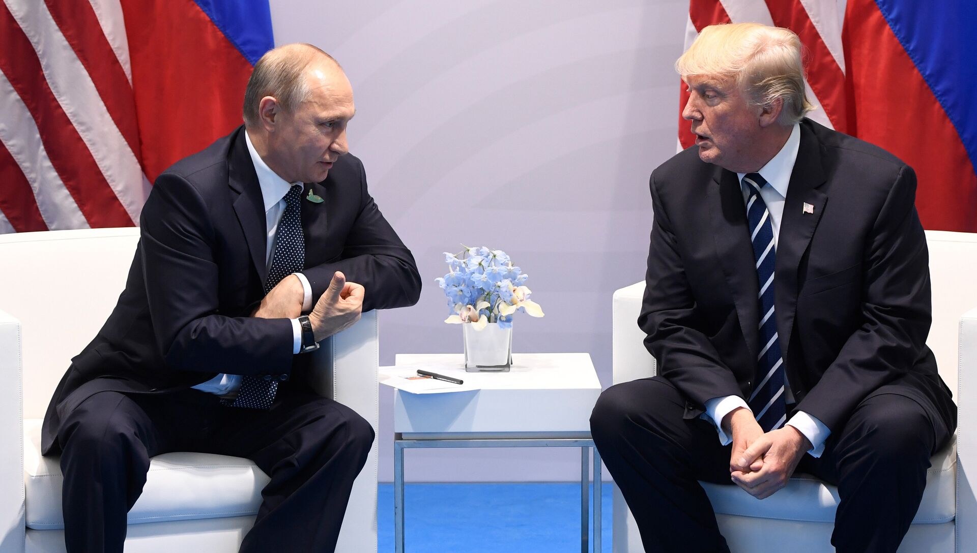 "Поскольку уж был там, то поприветствовал и Путина… Действительно, это был больше обмен любезностями, чем что-то еще. И это не было длительное общение — может быть, 15 минут. Интересно, что мы говорили об усыновлении детей", — пояснил американский лидер.