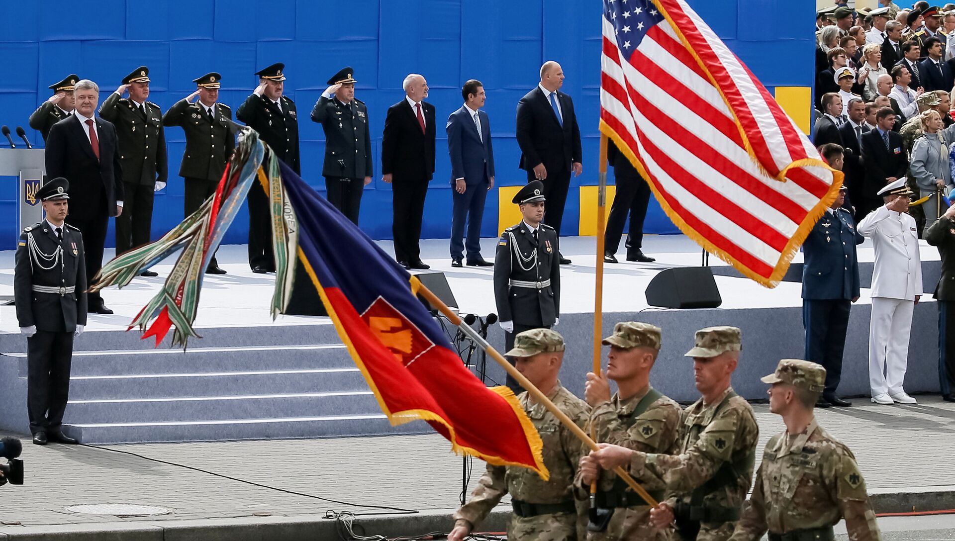 © REUTERS / Gleb GaranichВоеннослужащие стран НАТО на параде в честь Дня независимости в Киеве. 24 августа 2017