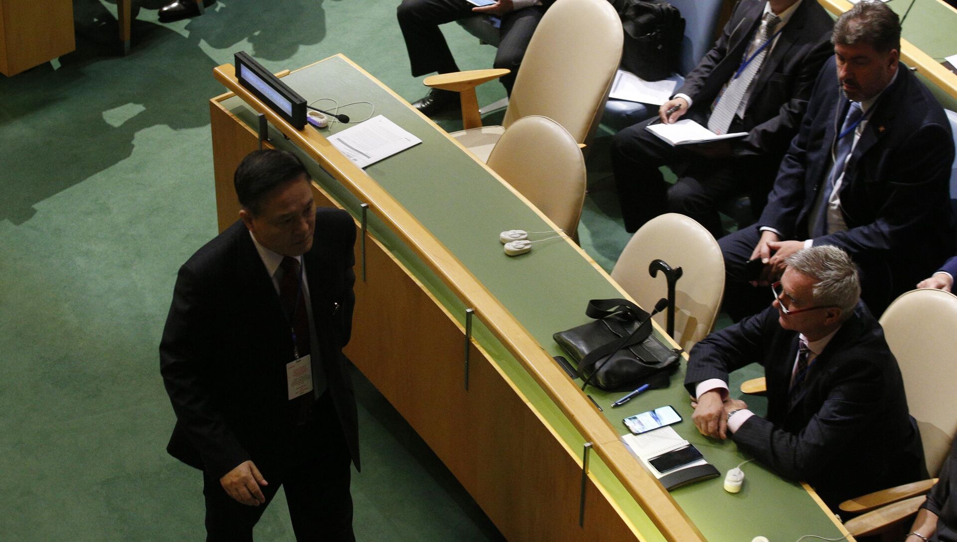 Постоянный представитель КНДР при ООН Ча Сон Нам на заседании Генеральной Ассамблеи ООН в Нью-Йорке. 19 сентября 2017