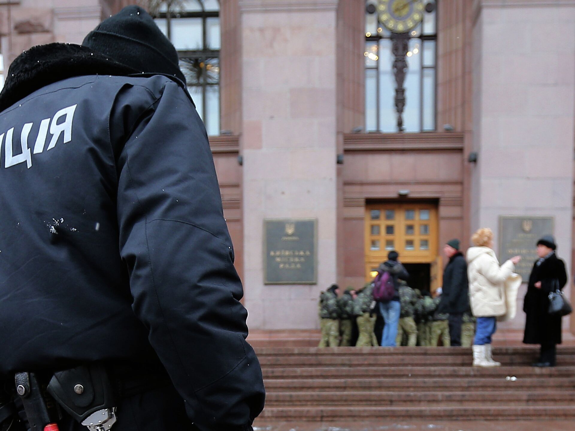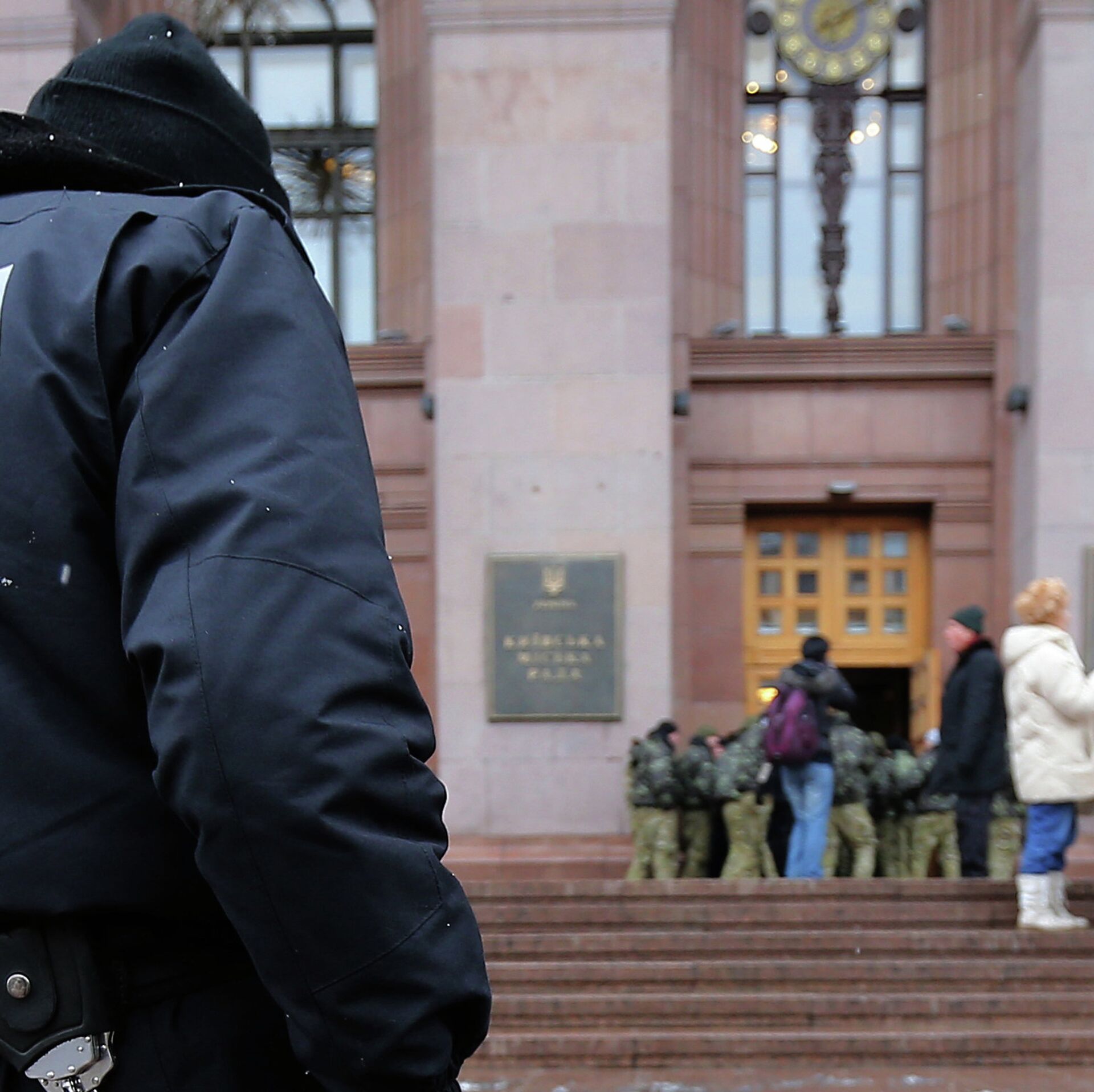 © РИА Новости / Константин Вечорек | Перейти в медиабанкСотрудник правоохранительных органов у здания Киевской государственной городской администрации