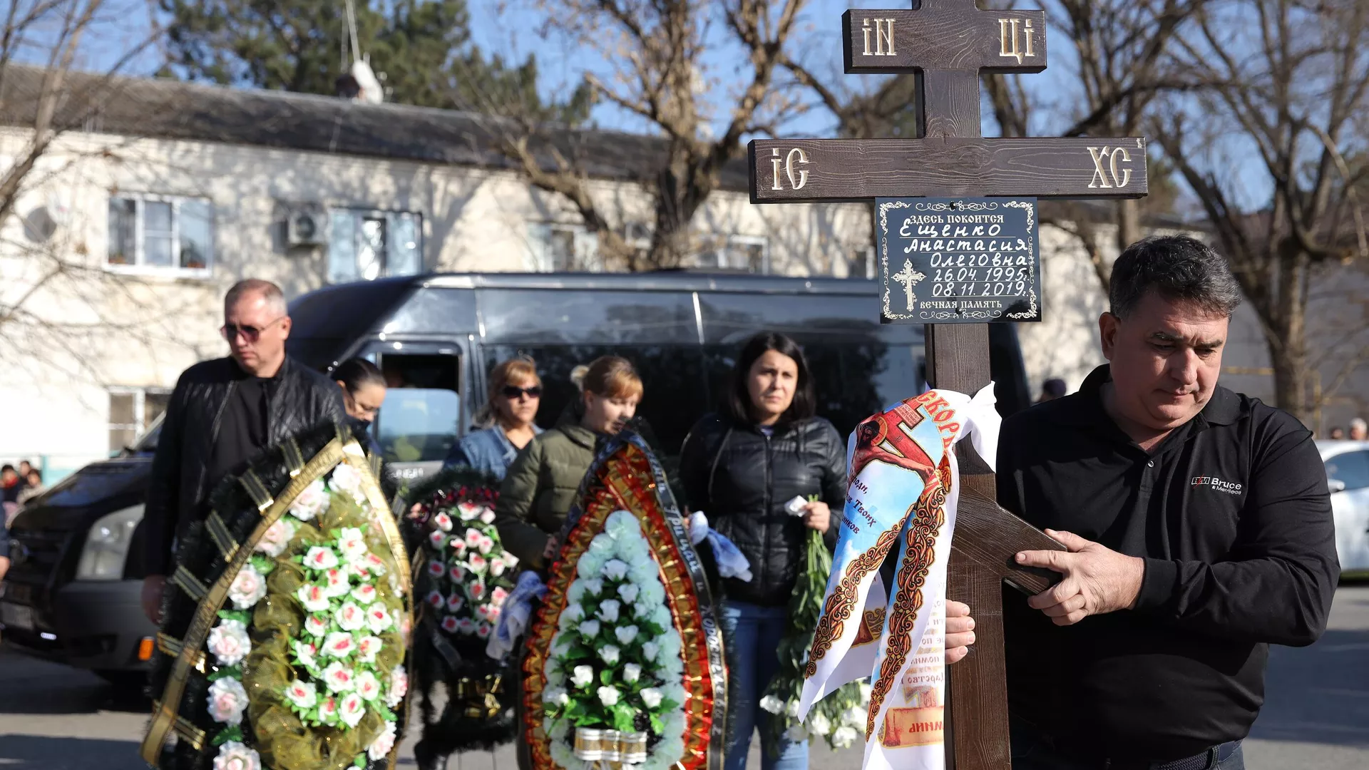 Проститься с бывшей студенткой СПбГУ пришли знакомые ее семьи, соседи, местные власти. Все несли цветы. Траурная процессия от дома погибшей, к которой молчаливо примкнули несколько сотен станичников, отправилась на местное кладбище. Люди также присоединялись на пути следования колонны.