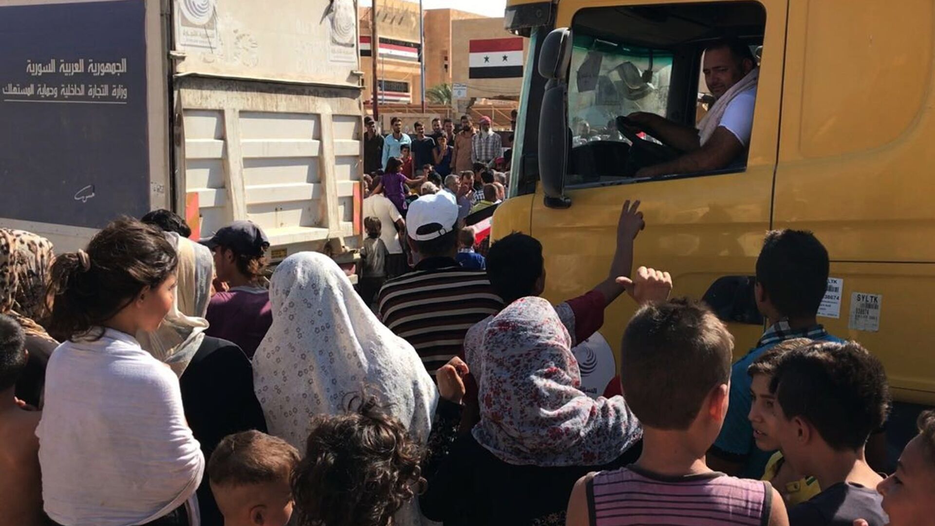 Жители города Ат-Табка в Сирии получили гуманитарную помощь из России