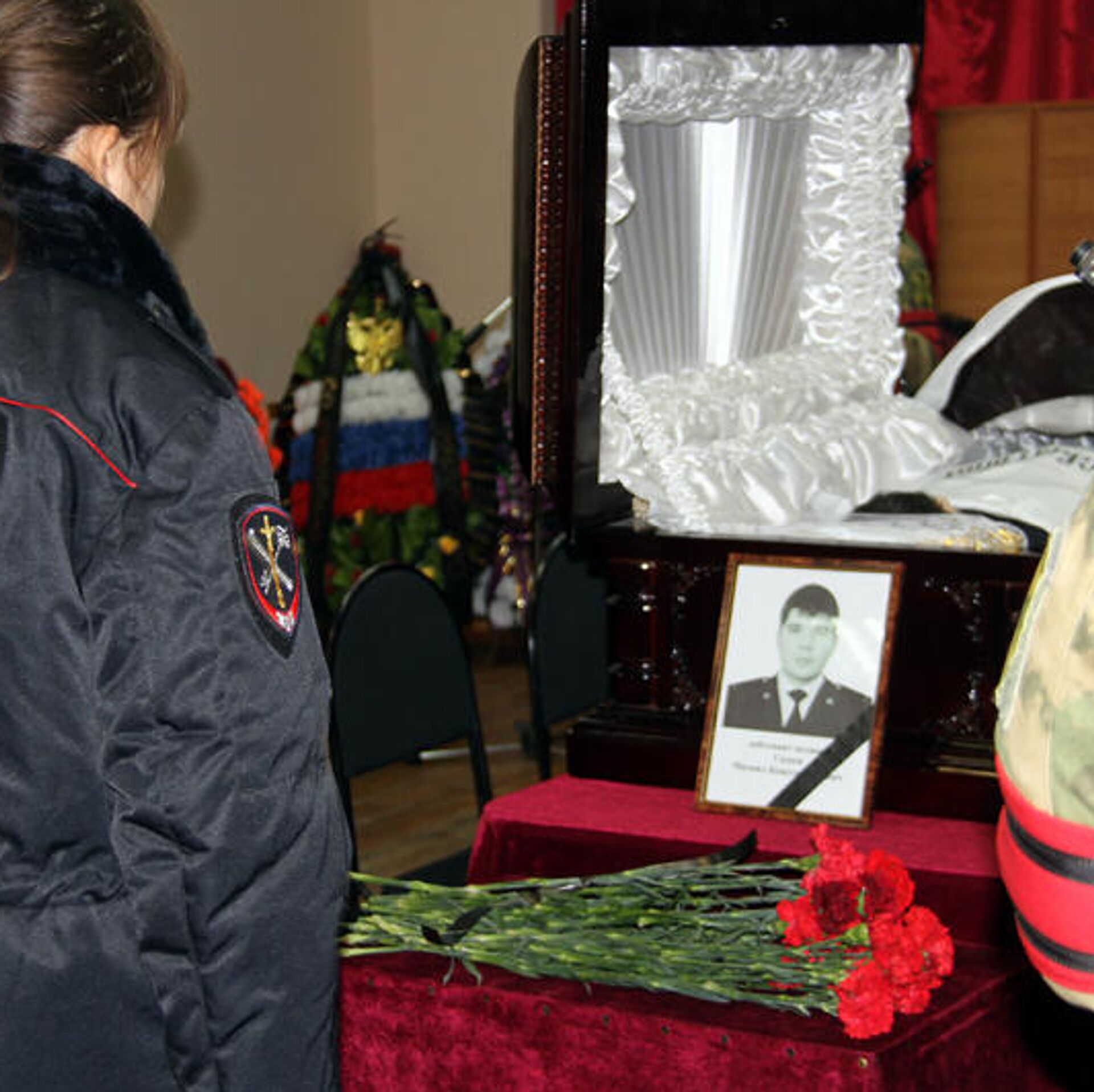 Церемония прощания с погибшим при исполнении служебных обязанностей сотрудником полиции в Саратове