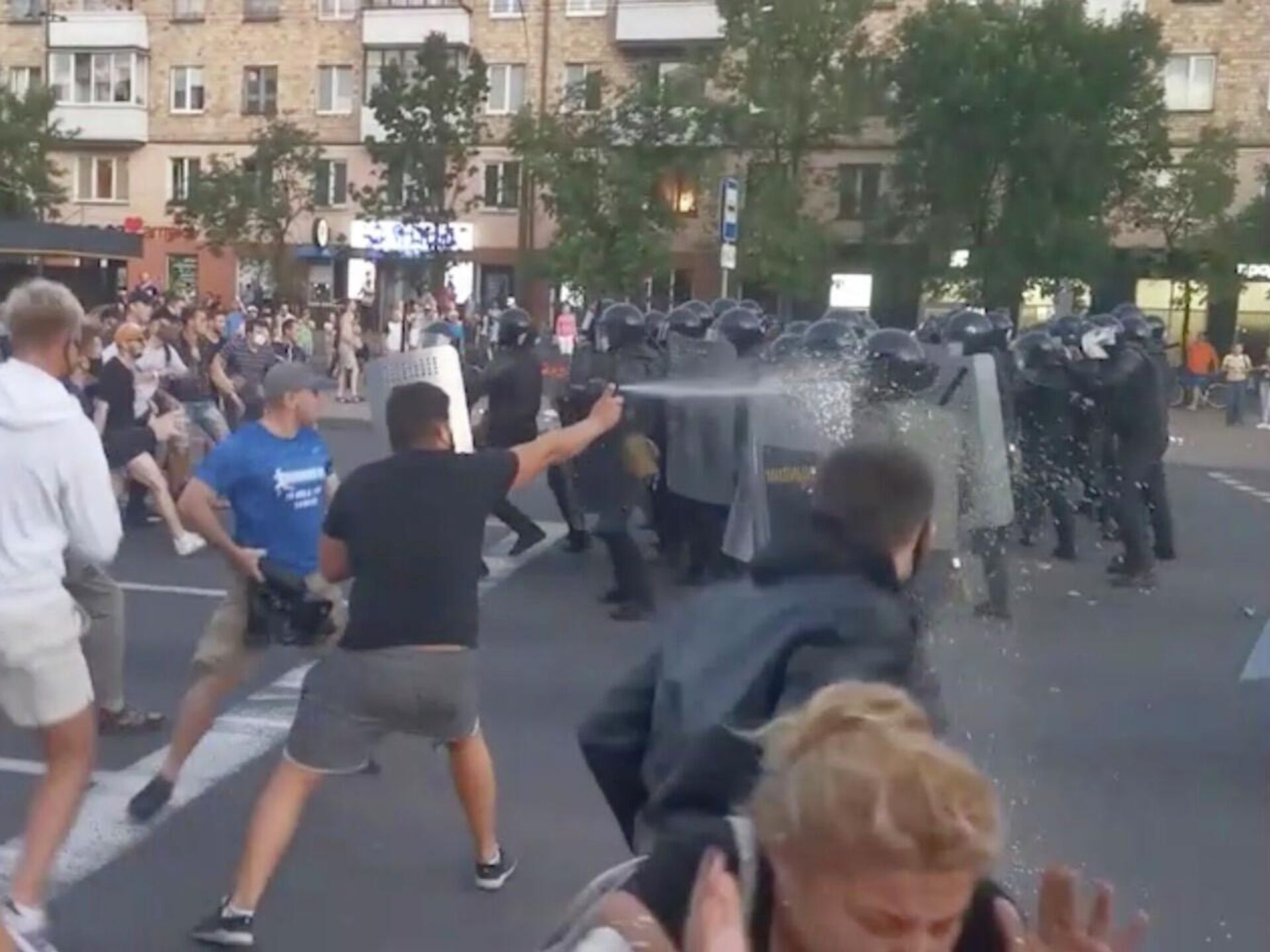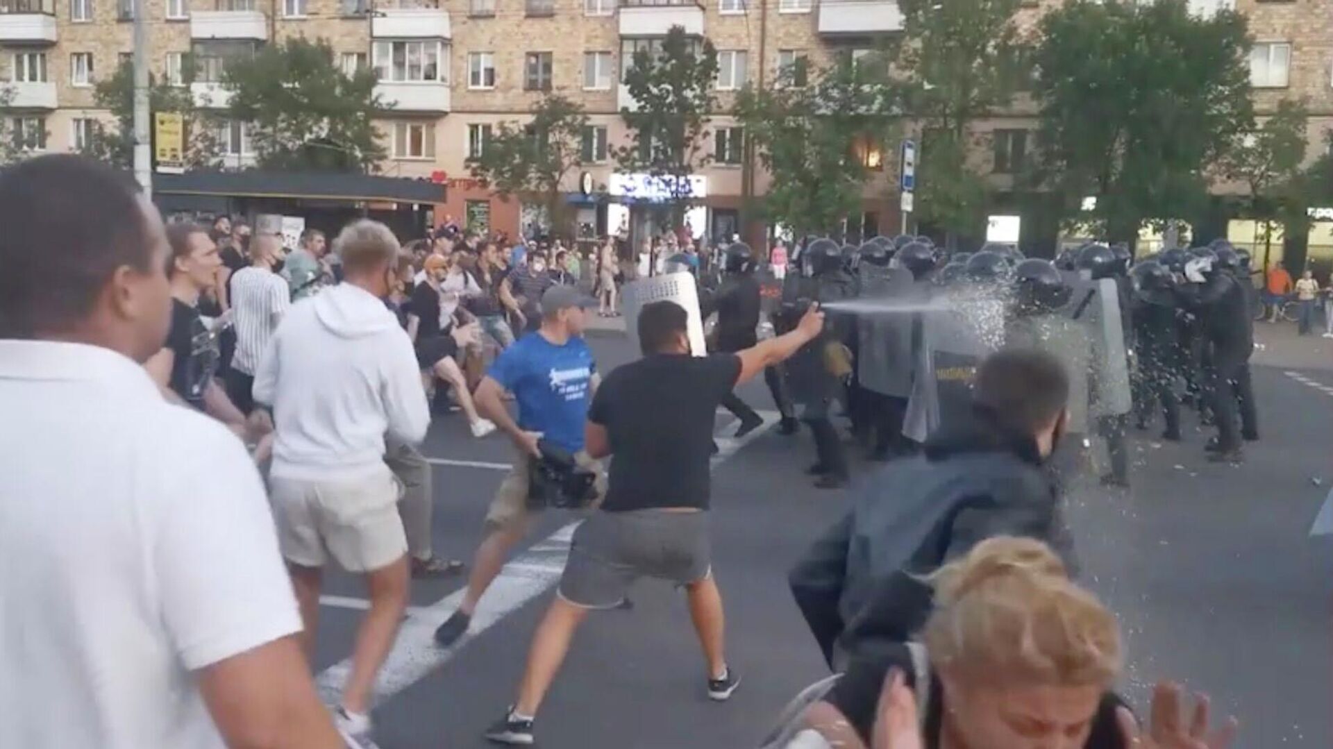 Столкновения протестующих с ОМОНом в Бресте