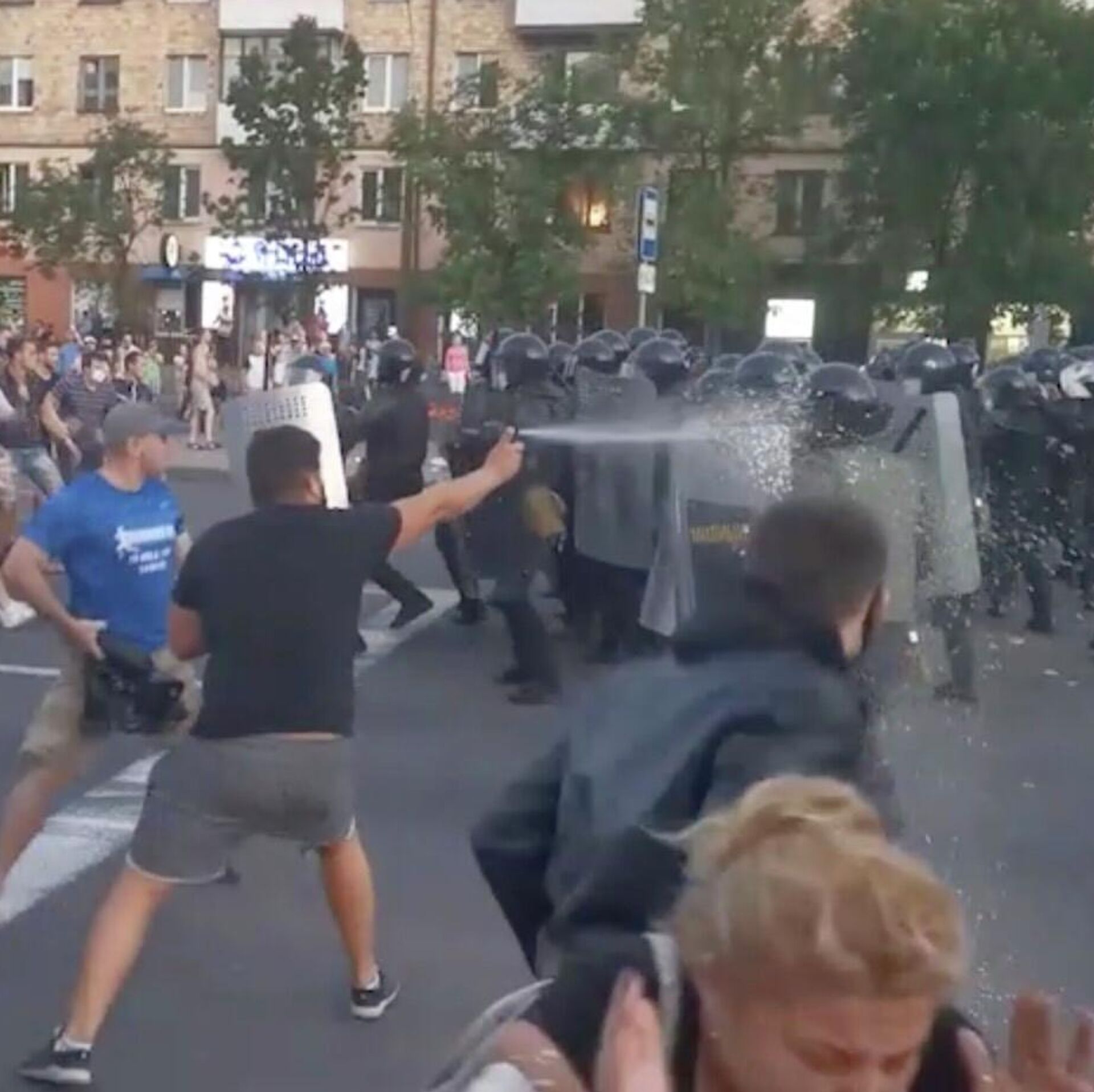 © Кадр из видео очевидца Столкновения протестующих с ОМОНом в Бресте