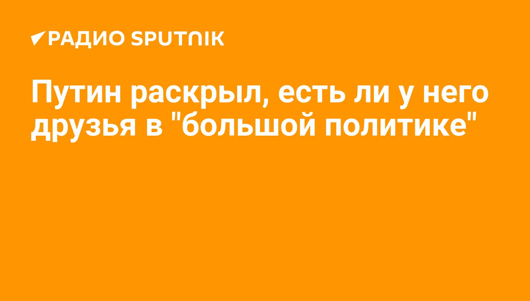Путин раскрыл, есть ли у него друзья в "большой политике" - Радио Sputnik, 11.10.2020