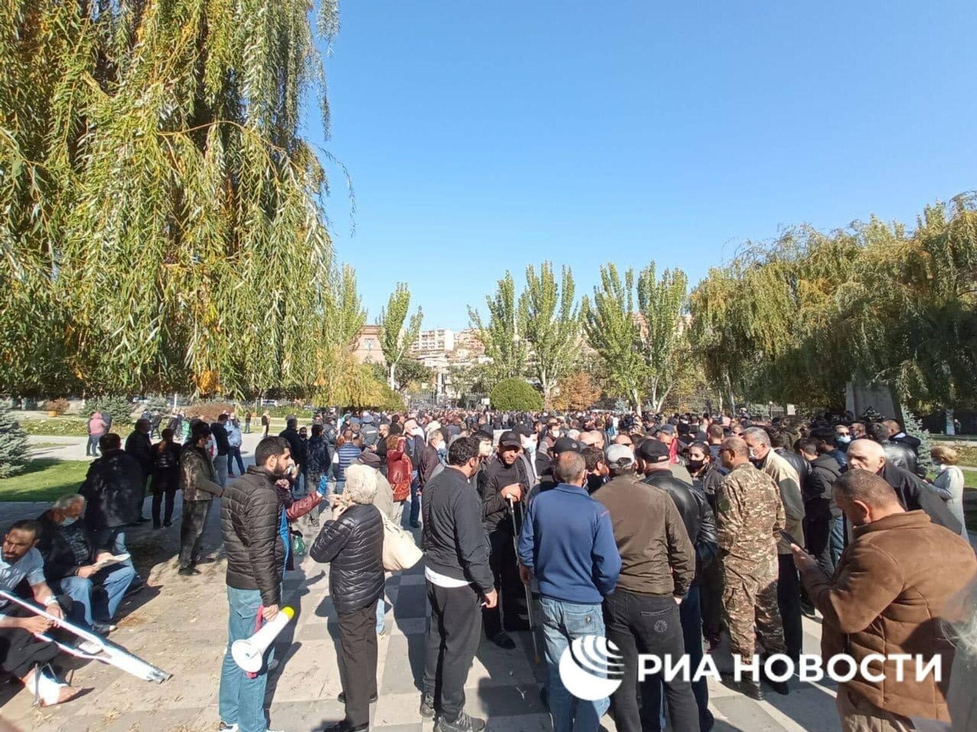 Из-за эскалации напряженности в Карабахе в конце сентября в Армении было введено военное положение и объявлена мобилизация. После совместного заявления президентов Армении, Азербайджана и России о введении режима прекращения огня в Карабахе, 17 оппозиционных партий Национального собрания Армении заявили о планах провести митинг в среду.