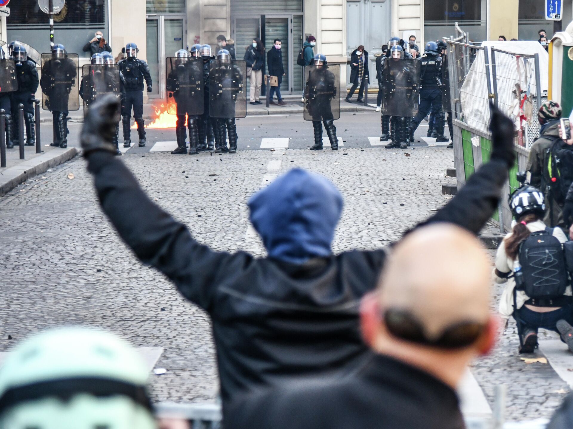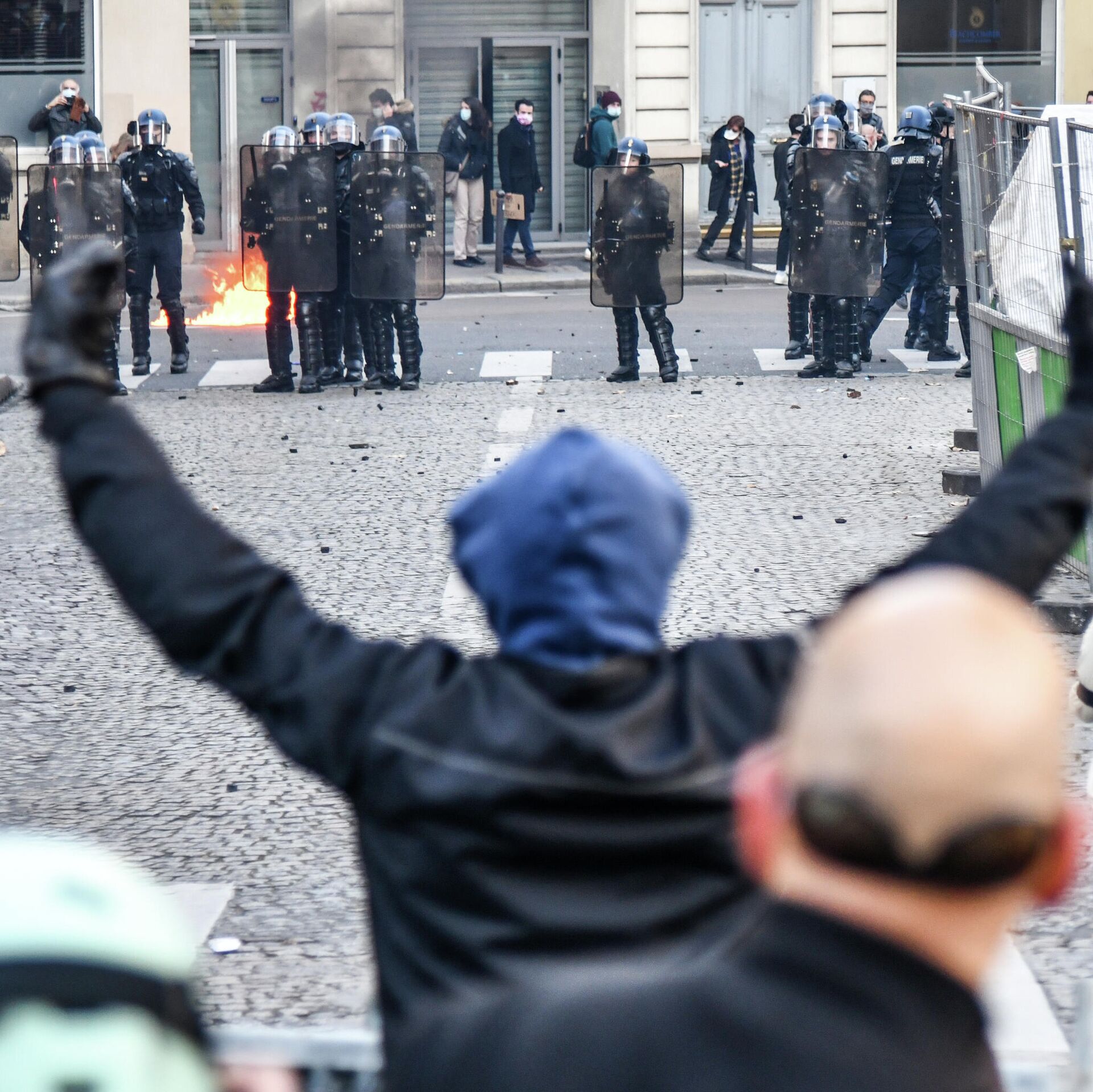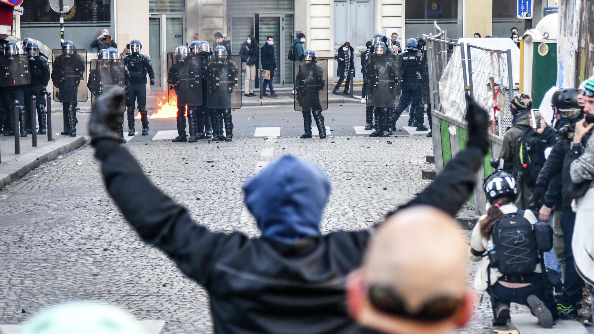 МОСКВА, 5 декабря/ Радио Sputnik. В столице Франции протестующие вновь вышли на улицы из-за 24 статьи законопроекта "О глобальной безопасности", в стражей правопорядка летят камни, петарды, против толпы применили слезоточивый газ, передает РИА Новости.