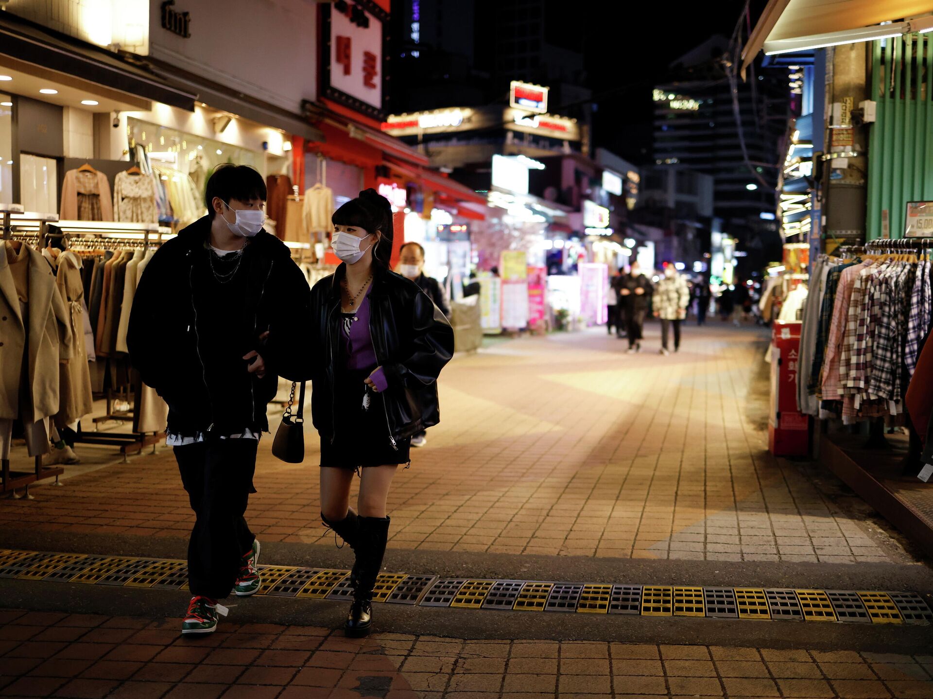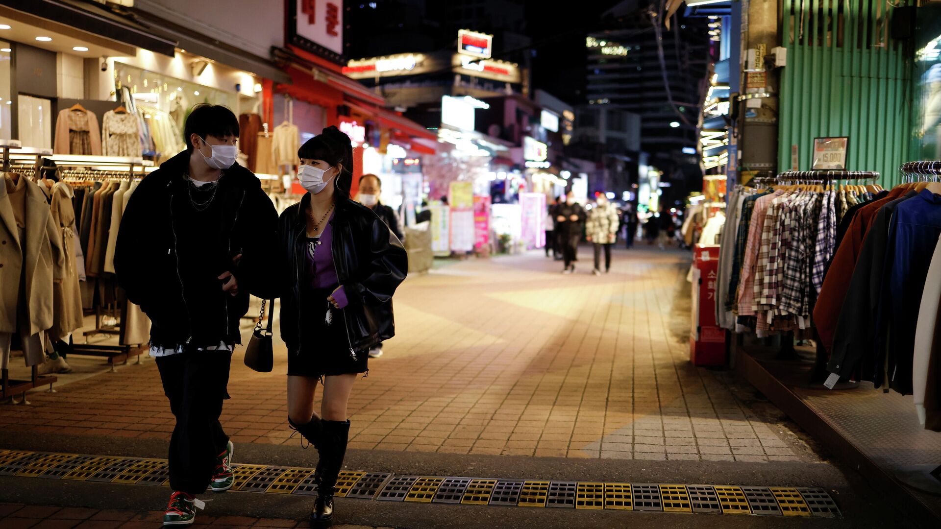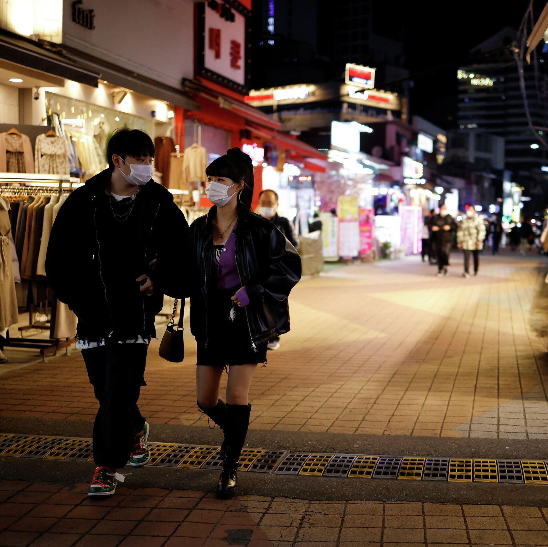 © REUTERS / Kim Hong-JiПрохожие на опустевшей торговой улице в Сеуле, Южная Корея