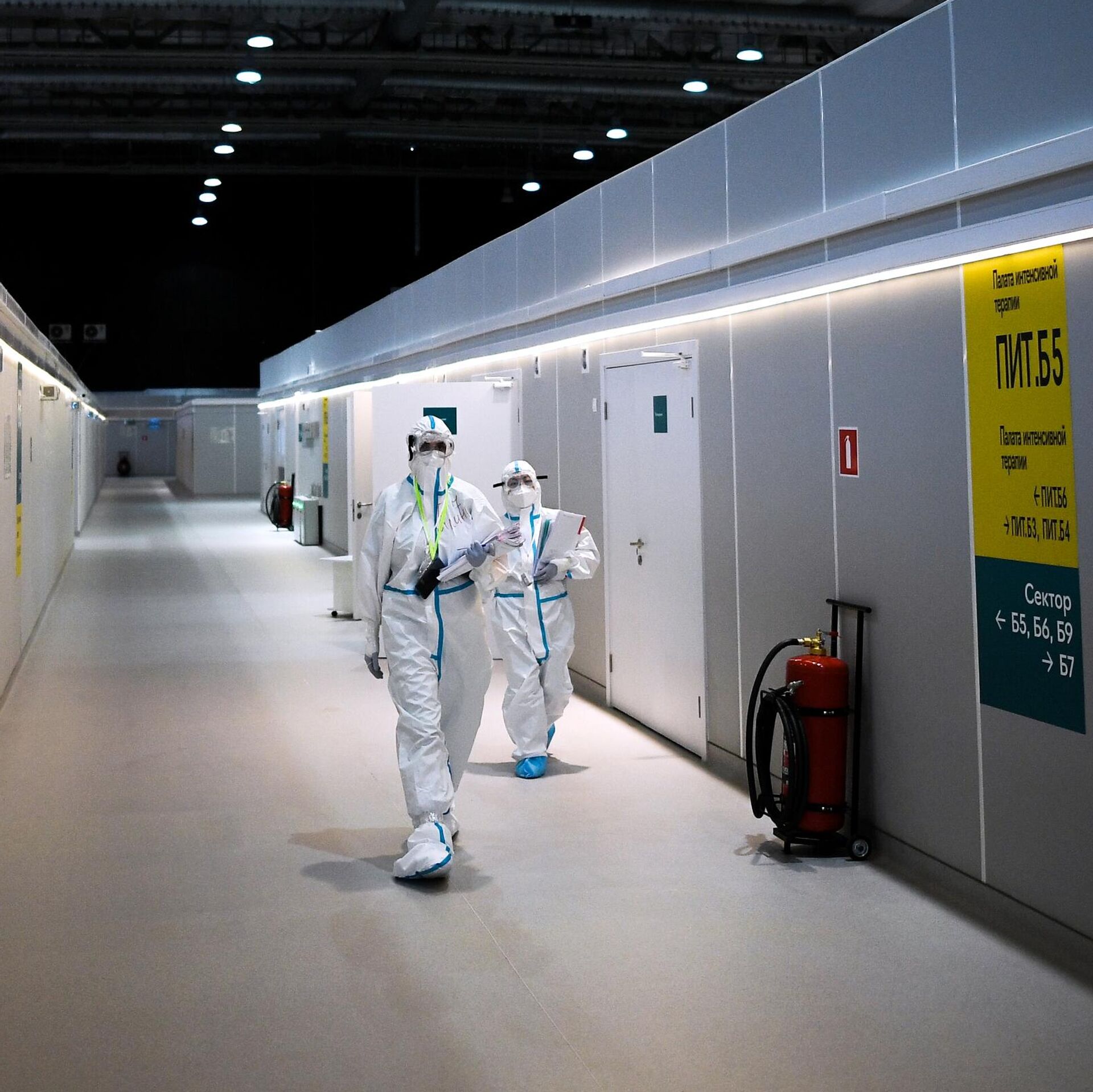 © РИА Новости / Владимир Астапкович | Перейти в медиабанкМедицинские работники во временном госпитале для пациентов с COVID-19 в Сокольниках