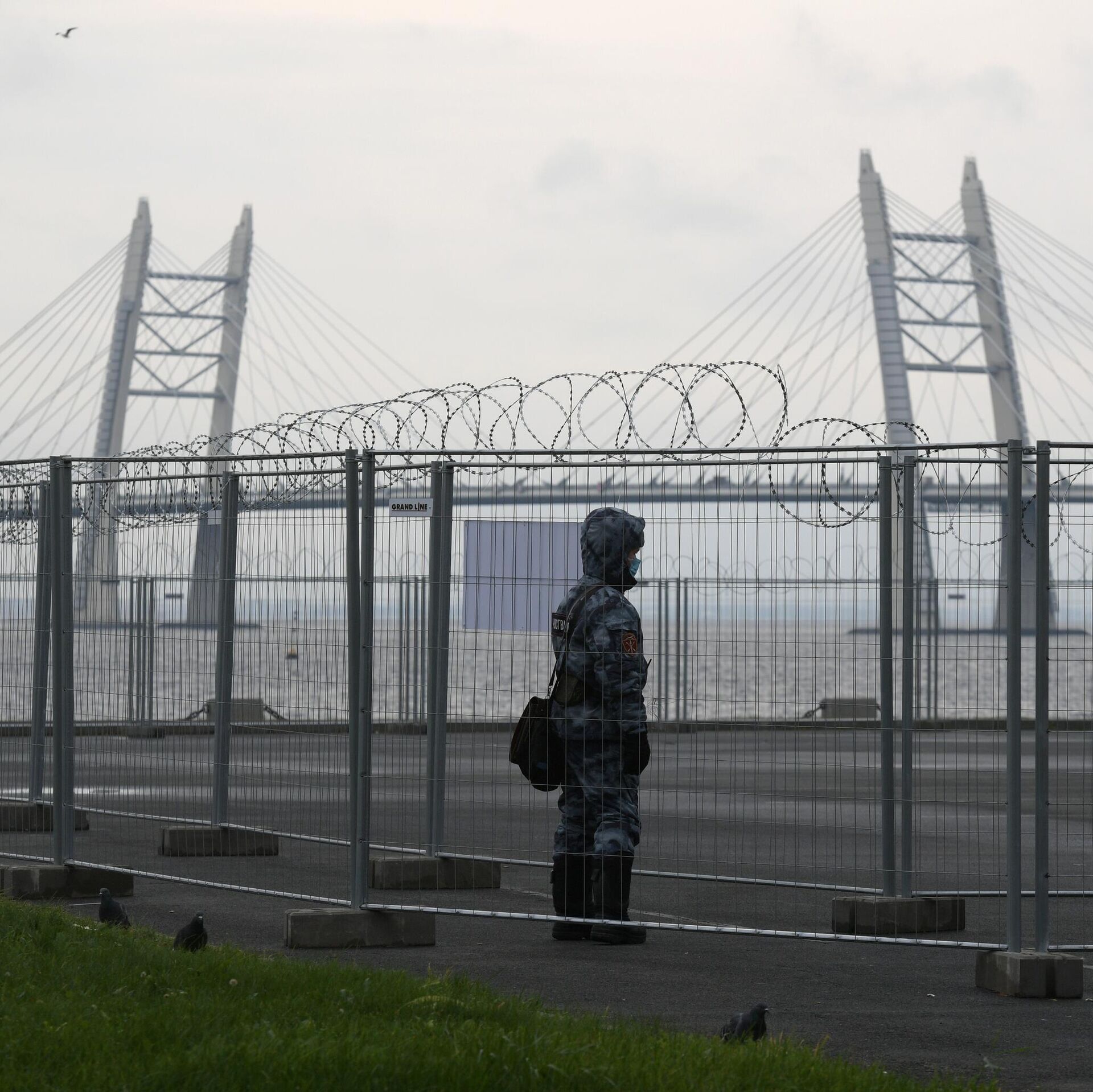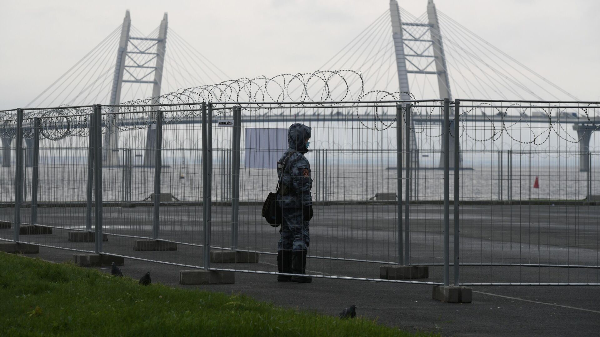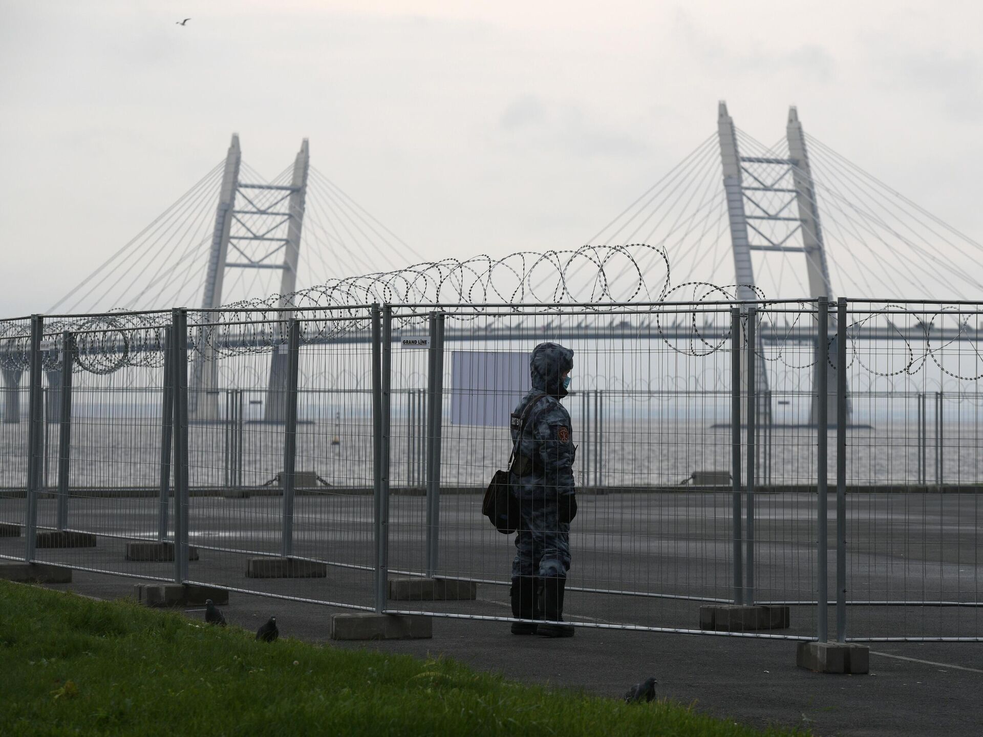 © РИА Новости / Александр Гальперин | Перейти в медиабанкСотрудник Росгвардии у павильона №5 временного госпиталя "Ленэкспо" для пациентов с COVID-19 в Санкт-Петербурге