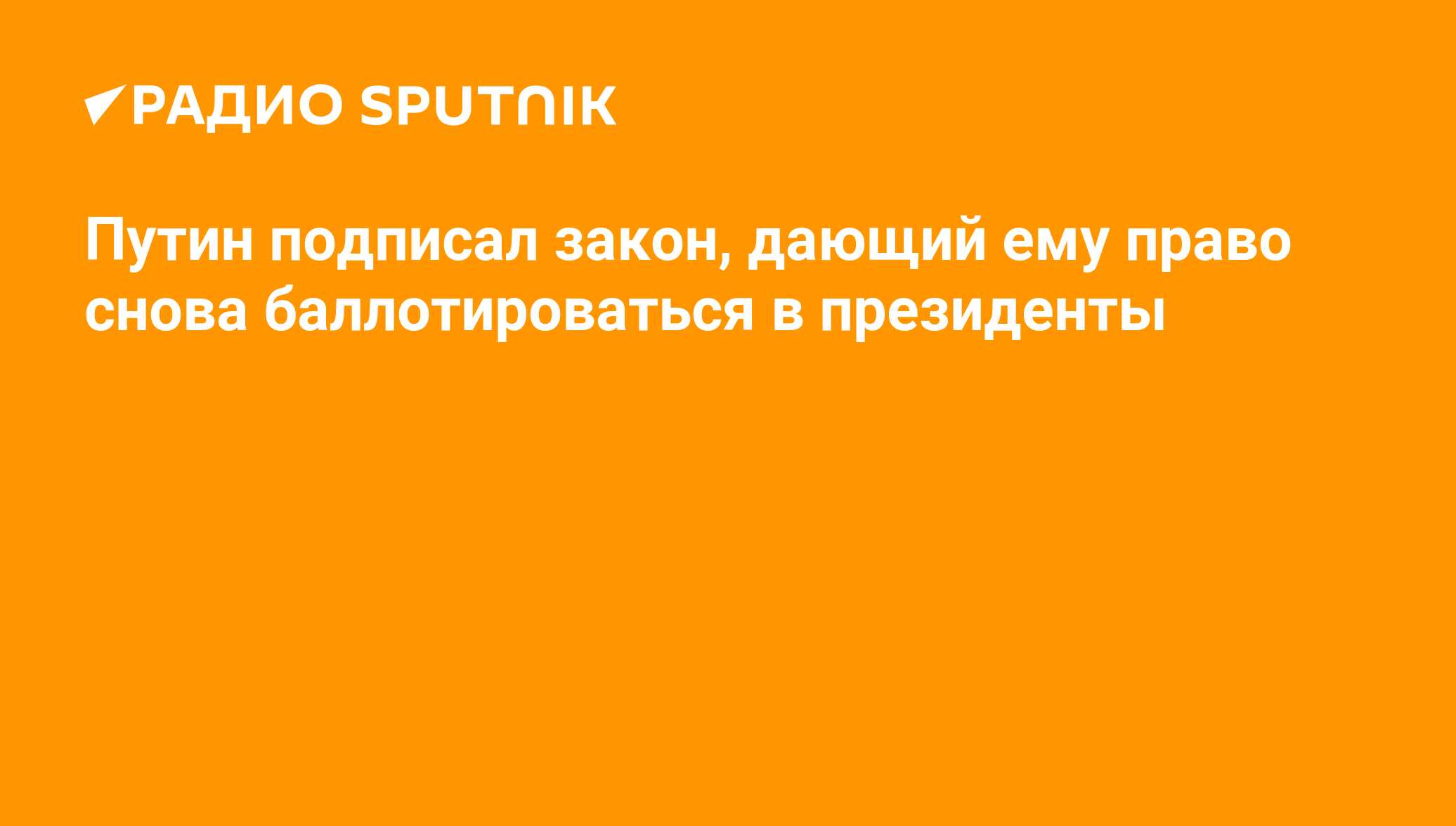 Президент РФ Владимир Путин подписал закон, дающий право действующему главе государства баллотироваться еще на два срока, соответствующий документ опубликован... Радио Sputnik, 05.04.2021
