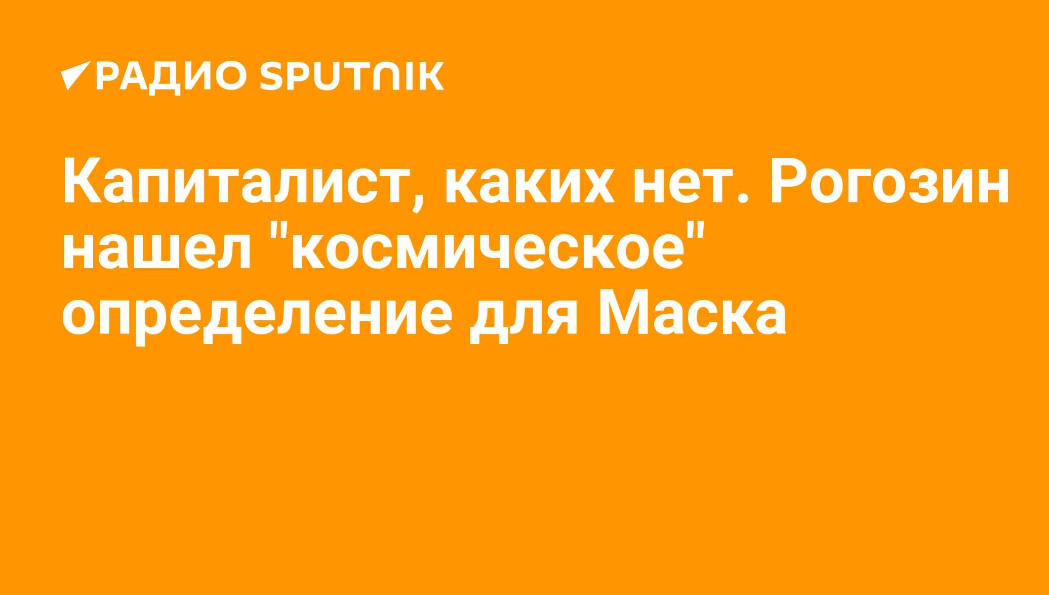 МОСКВА, 24 мая/ Радио Sputnik. Гендиректор "Роскосмоса" Дмитрий Рогозин назвал основателя компании SpaceX Илона Маска "космическим капиталистом", а его выступление перед российскими студентами – бессодержательным, передает РИА Новости.