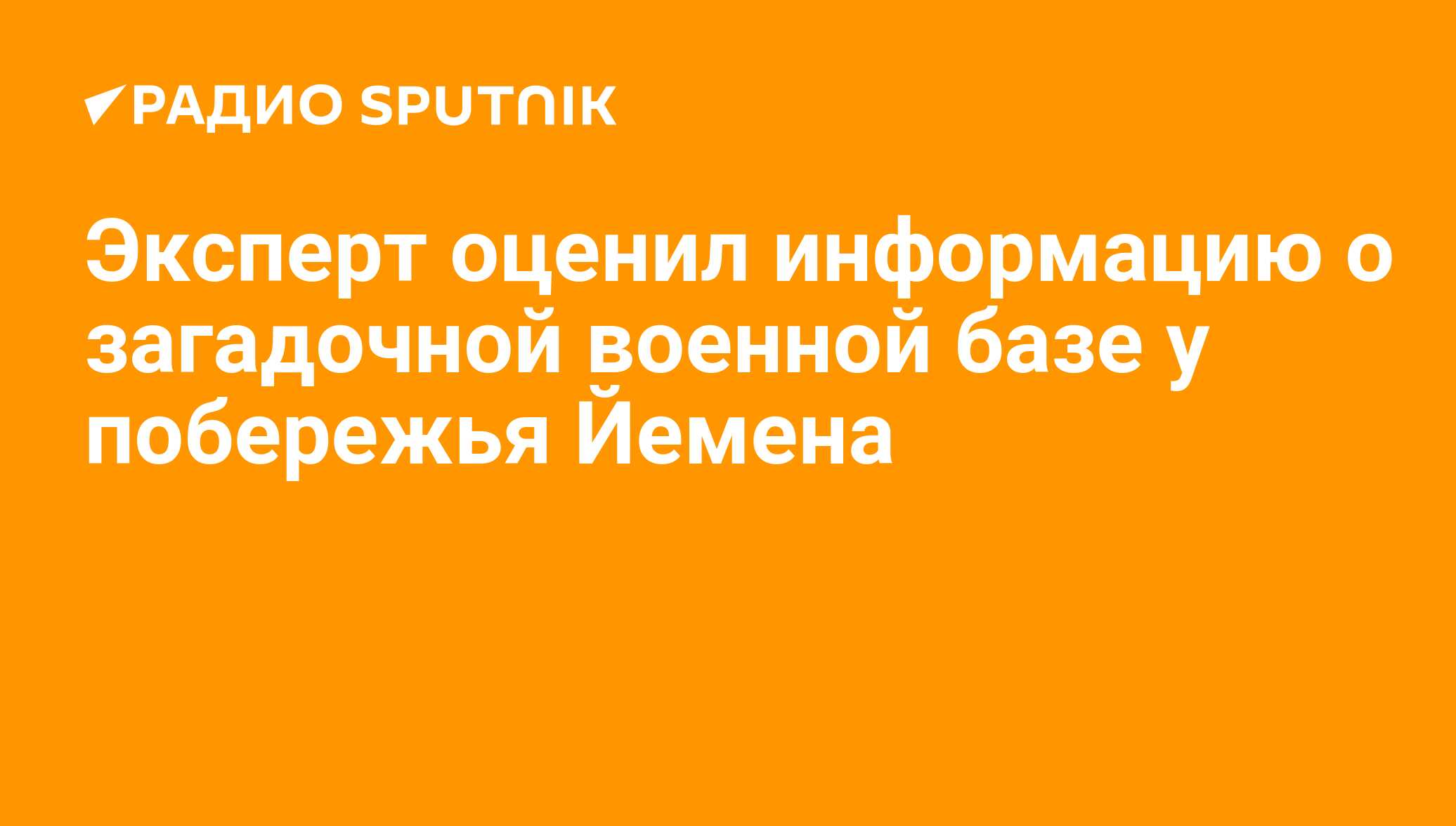 СМИ сообщают о неизвестной военной базе рядом с ключевым маршрутом поставок энергоносителей и коммерческих грузов у побережья Йемена. В эфире радио Sputnik информацию прокомментировал политолог Станислав Тарасов.