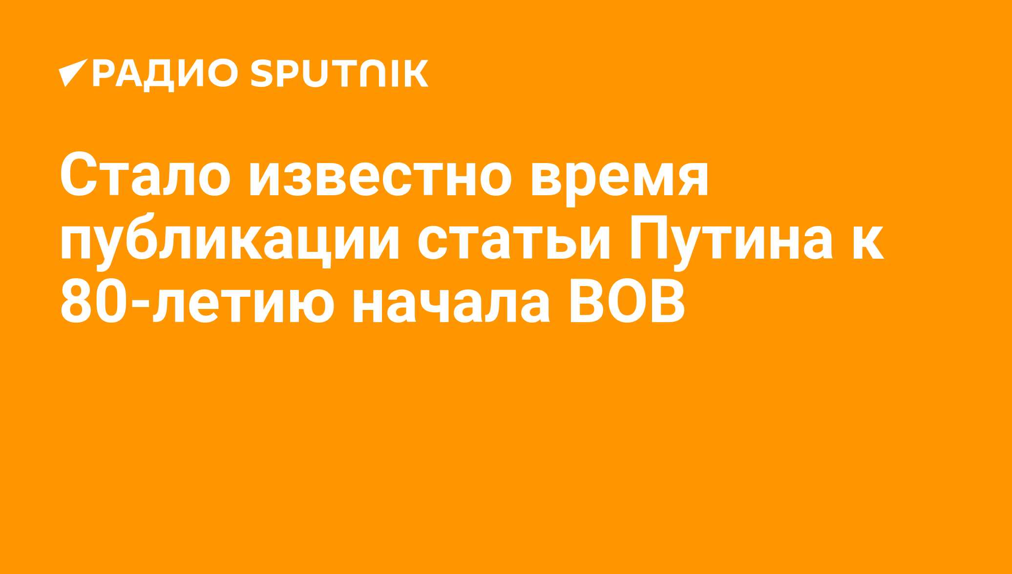 Накануне радио Sputnik сообщило, что глава российского государства подготовил статью, посвященную 80-летию начала Великой Отечественной войны, которая должно опубликовать одно из ведущих изданий Германии в День памяти и скорби.