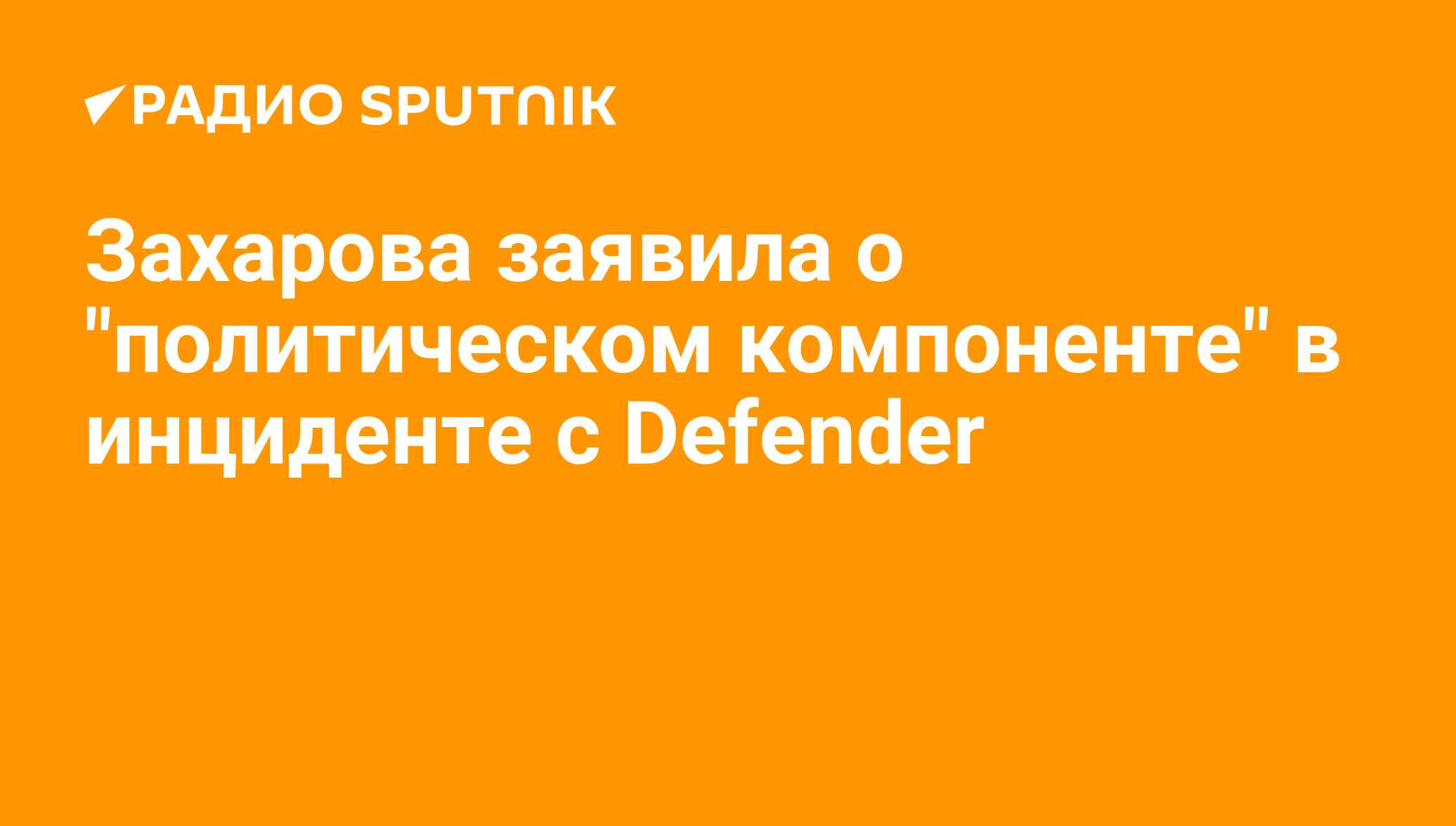 МОСКВА, 24 июня/ Радио Sputnik. Вторжение британского эсминца Defender вглубь российской территории в районе Крыма имеет политический компонент, заявила официальный представитель МИД РФ Мария Захарова в эфире телеканала "Россия 1".