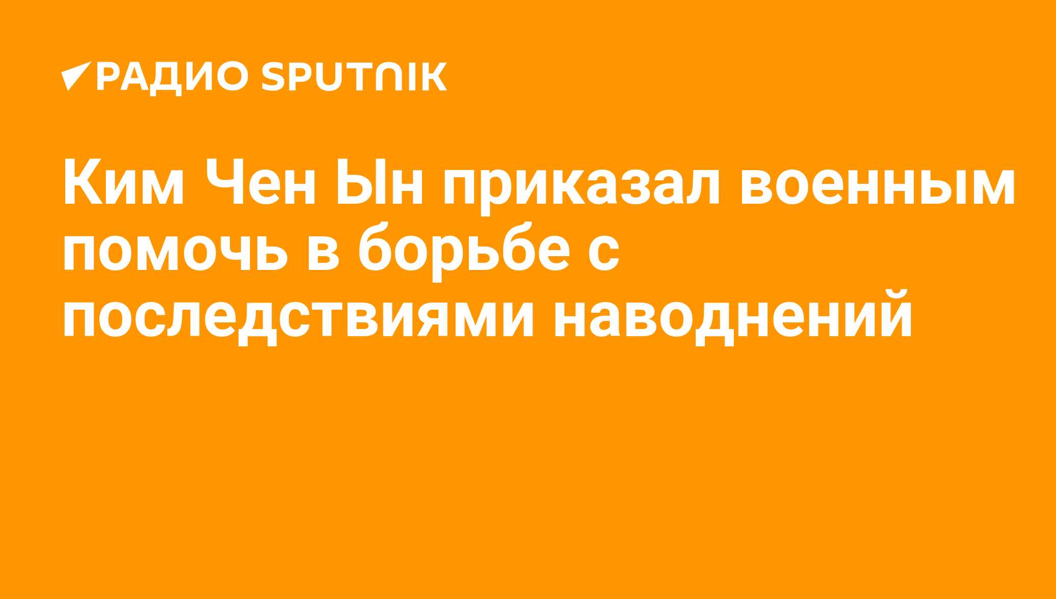 МОСКВА, 8 августа/ Радио Sputnik. Лидер КНДР Ким Чен Ын приказал военным помочь с ликвидацией последствий ливней в одной из провинций страны, передает Центральное телеграфное агентство Северной Кореи (ЦТАК). Об этом сообщает РИА Новости.