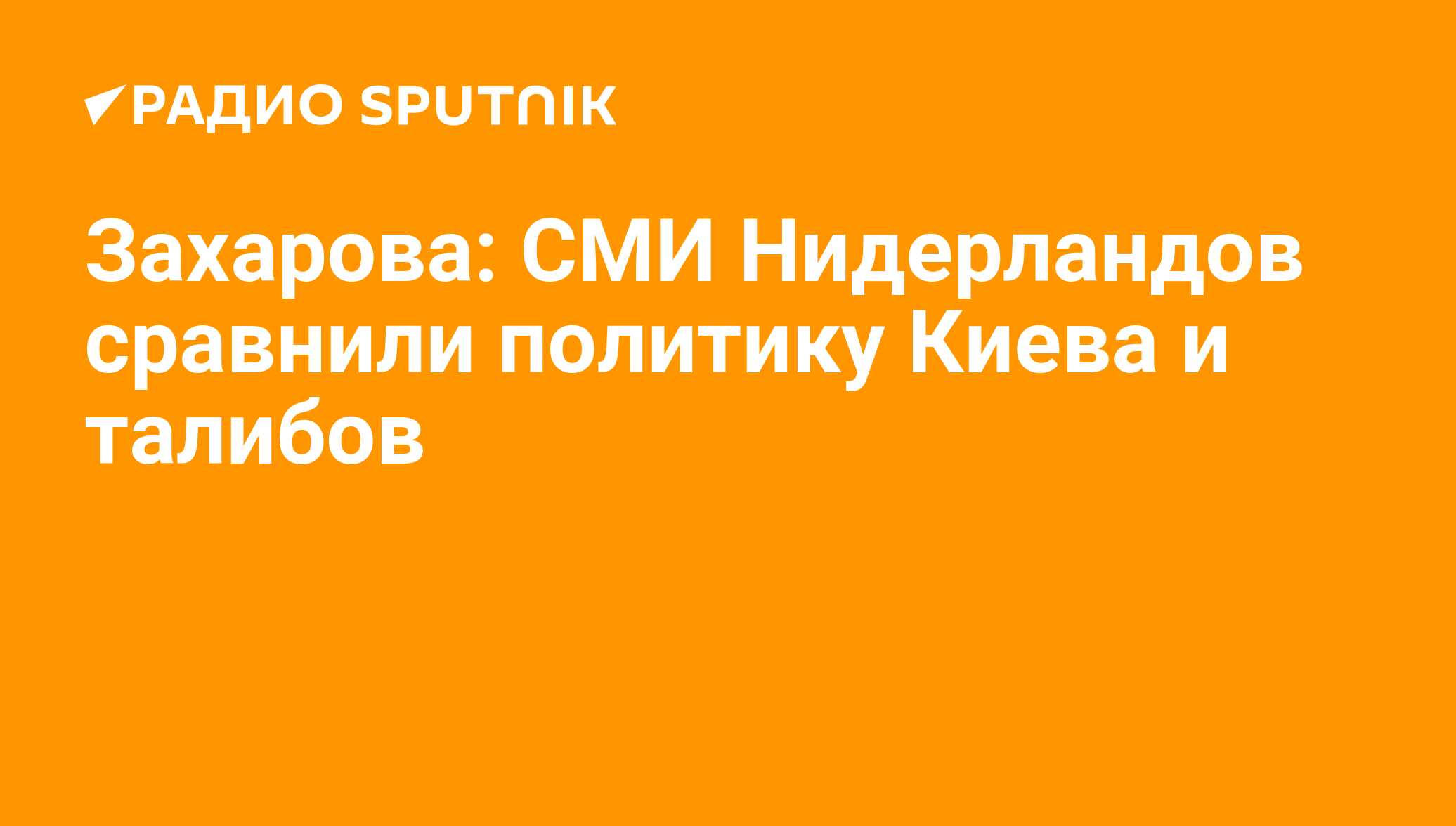 МОСКВА, 28 августа/ Радио Sputnik. Голландское издание De Telegraaf сравнило события на Украине в 2014 году и текущую ситуацию в Афганистане, о выводах журналистов рассказала в своем Telegram-канале официальный представитель МИД РФ Мария Захарова.