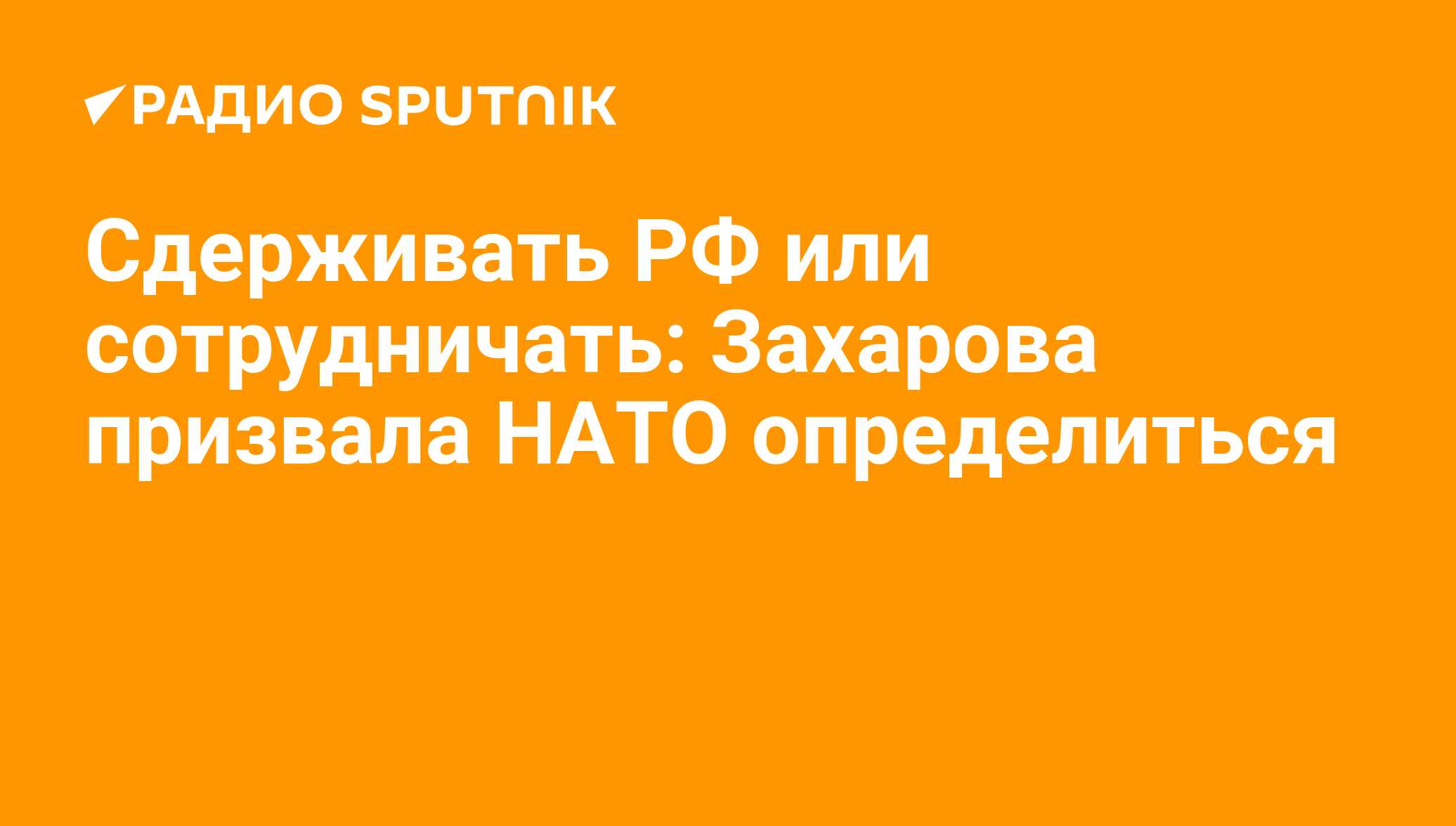 МОСКВА, 7 октября/ Радио Sputnik. НАТО пора определиться как в приоритетах, так и со своим отношением к России, заявила официальный представитель МИД РФ Мария Захарова.