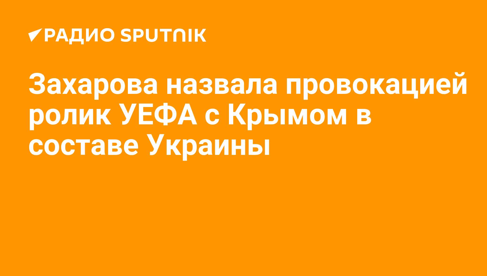 Официальный представитель МИД РФ Мария Захарова назвала провокацией ролик УЕФА, в котором Крым показан частью Украины, передает РИА Новости. Радио Sputnik, 07.10.2021