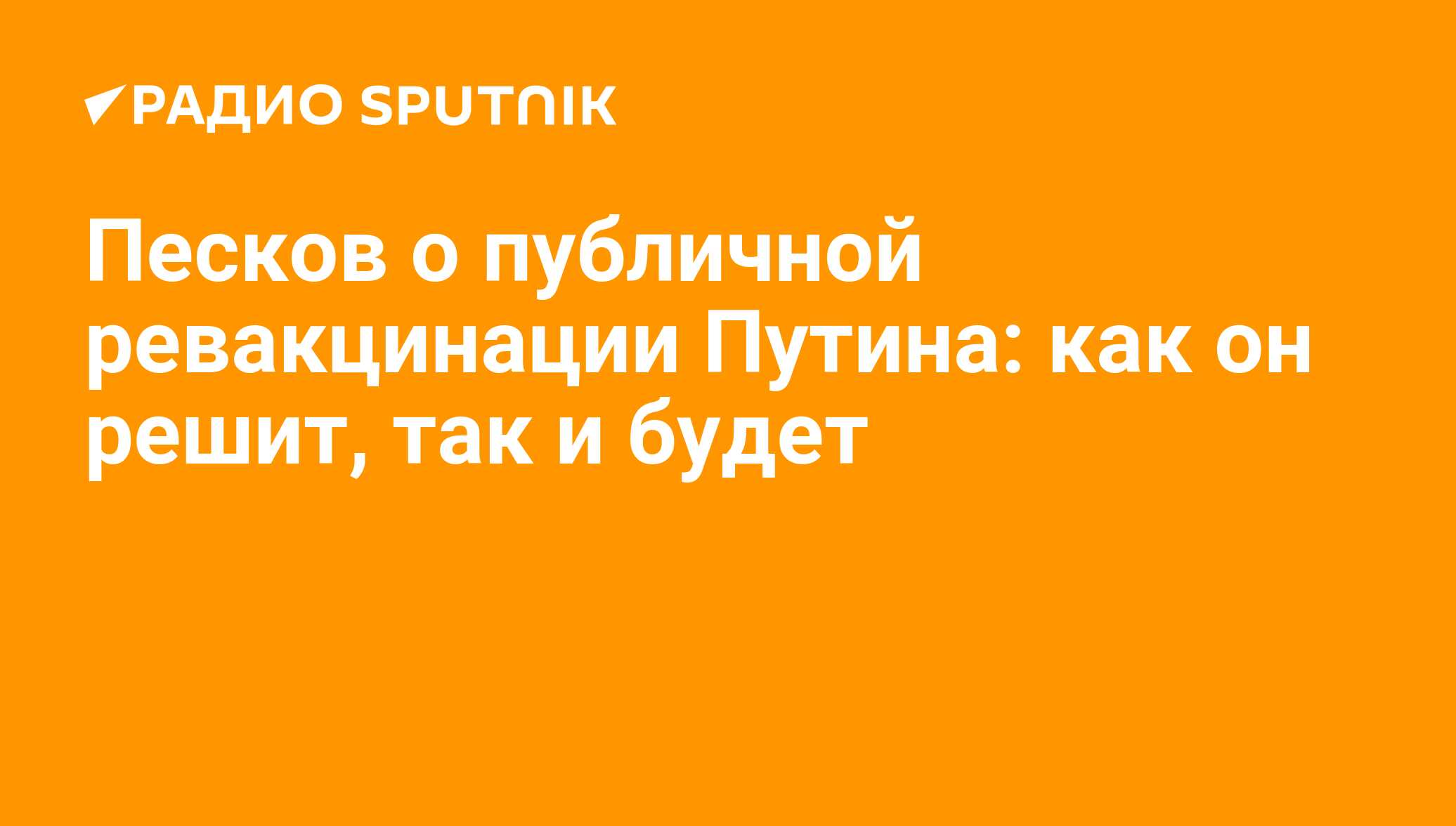 МОСКВА, 22 октября/ Радио Sputnik. Решение о том, покажут ли россиянам кадры ревакцинации президента РФ Владимира Путина от коронавируса, зависит исключительно от самого главы государства, сообщил РИА Новости пресс-секретарь российского лидера Дмитрий Песков.