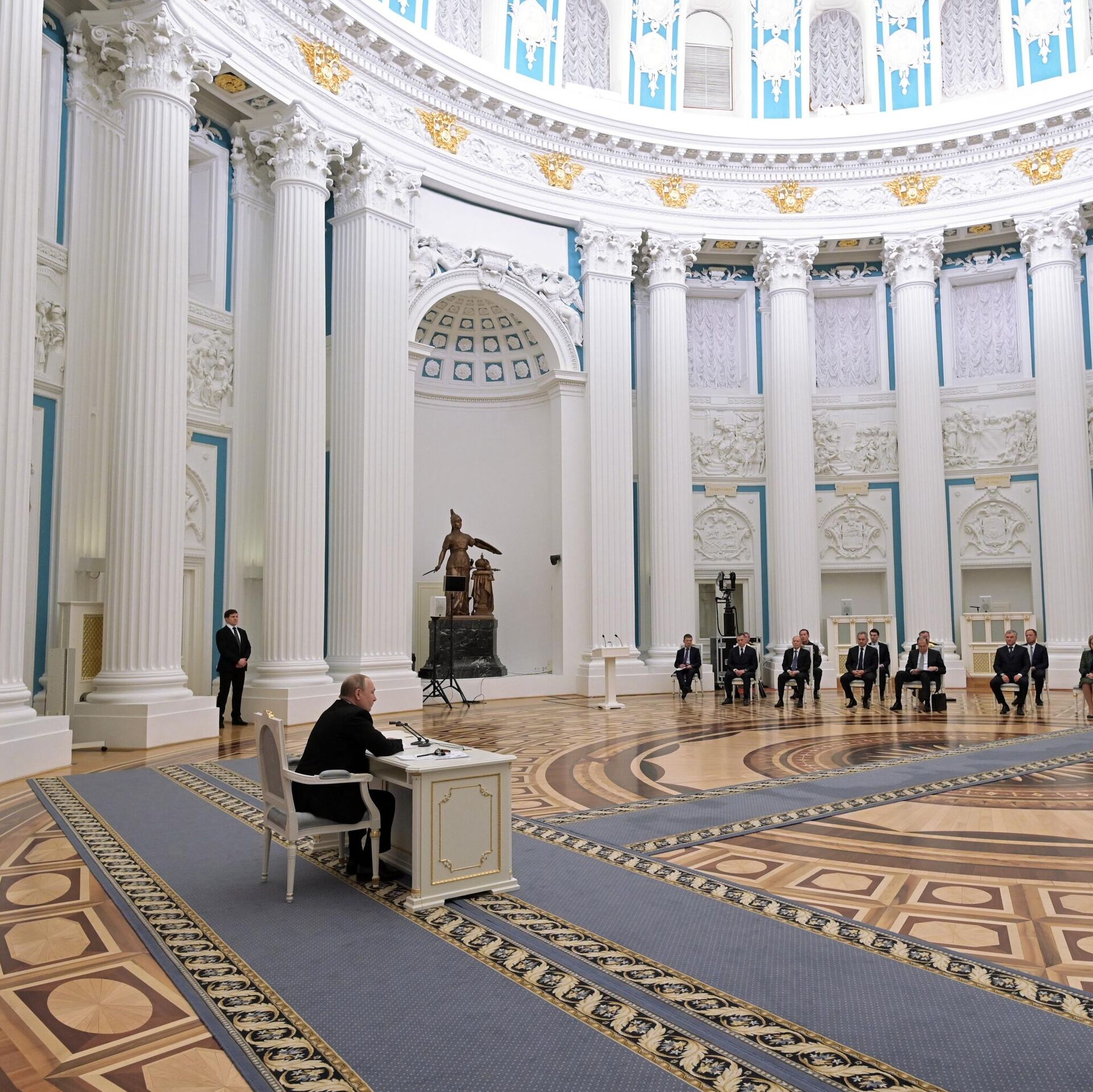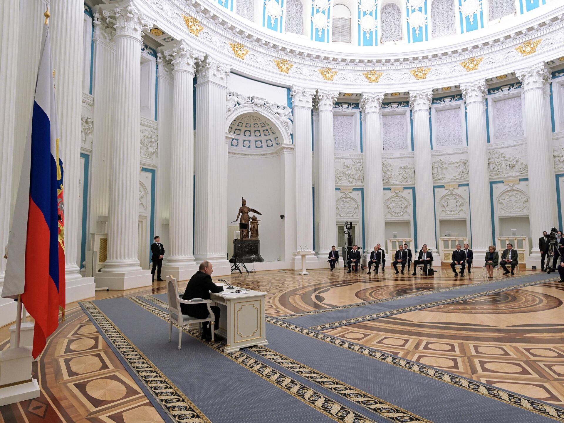 В понедельник, 21 февраля, президент РФ Владимир Путин созвал внеочередное большое заседание Совета безопасности России, на котором обсуждалась тема признания ДНР и ЛНР. В тот же день президент принял решение и в ходе своего видеообращения к жителям страны подписал указ о признании независимости республик Донбасса, а также договор о дружбе, сотрудничестве и взаимопомощи.