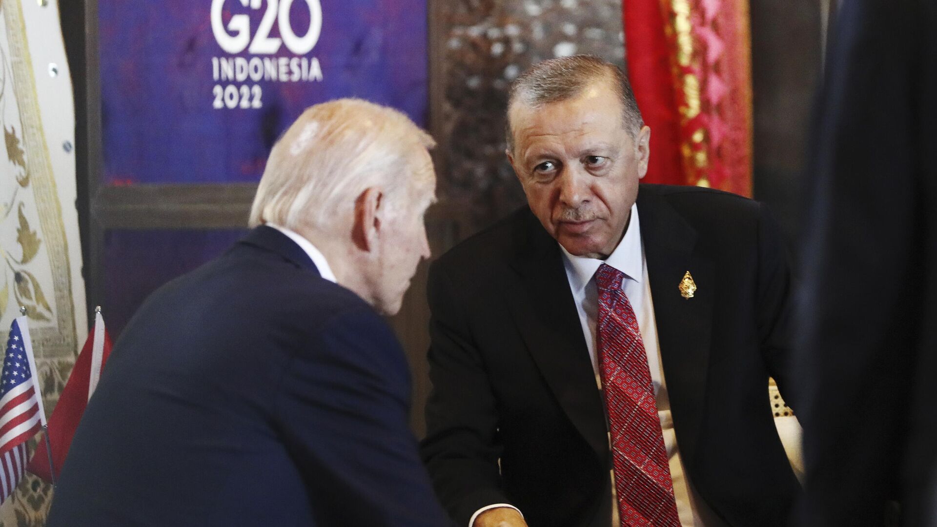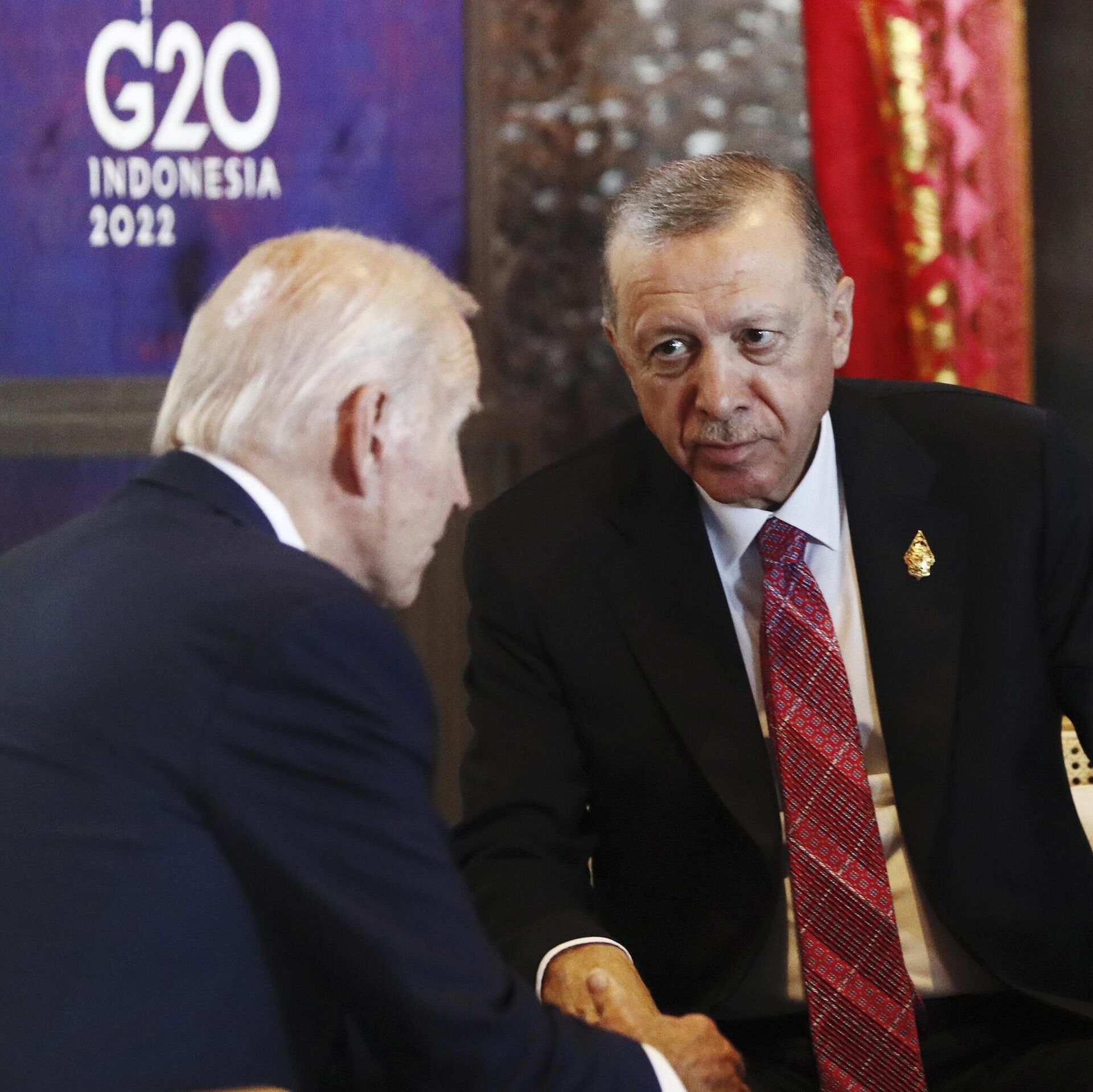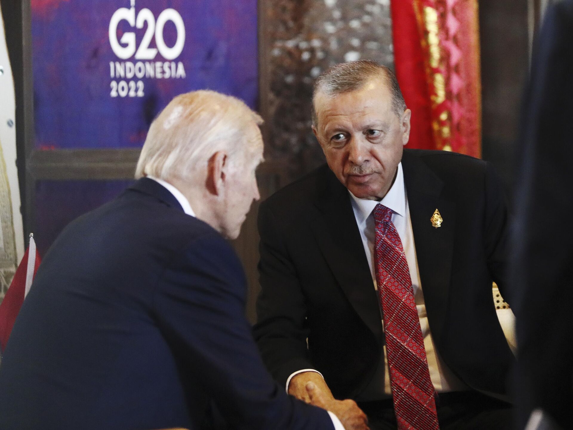 © AP Photo / Made Nagi/Pool PhotoПрезидент США Джо Байден и президент Турции Тайип Эрдоган на саммите G20 в Индонезии