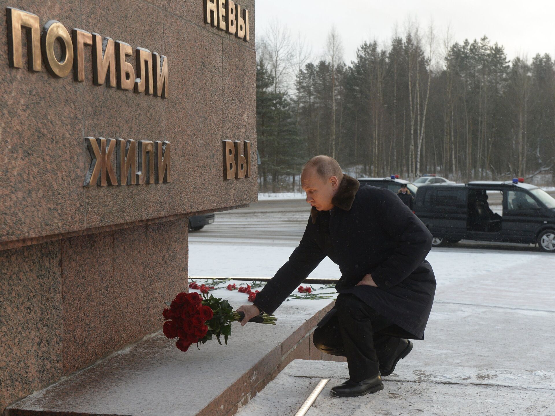 Путин прибыл к монументу на Невском пятачке в день 80-летия прорыва блокады Ленинграда