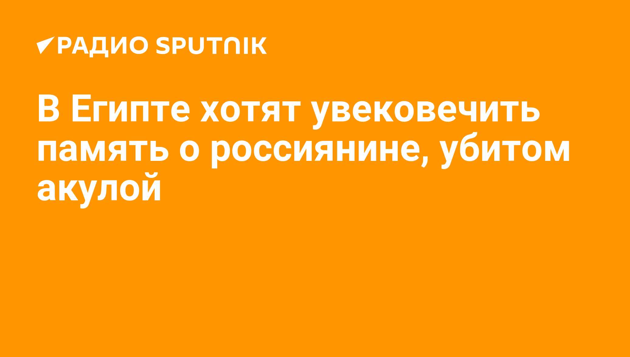 Египетский Институт морских наук и заповедников Красного моря хочет увековечить память о российском туристе, убитом акулой в Хургаде, сообщил заместитель... Радио Sputnik, 17.06.2023