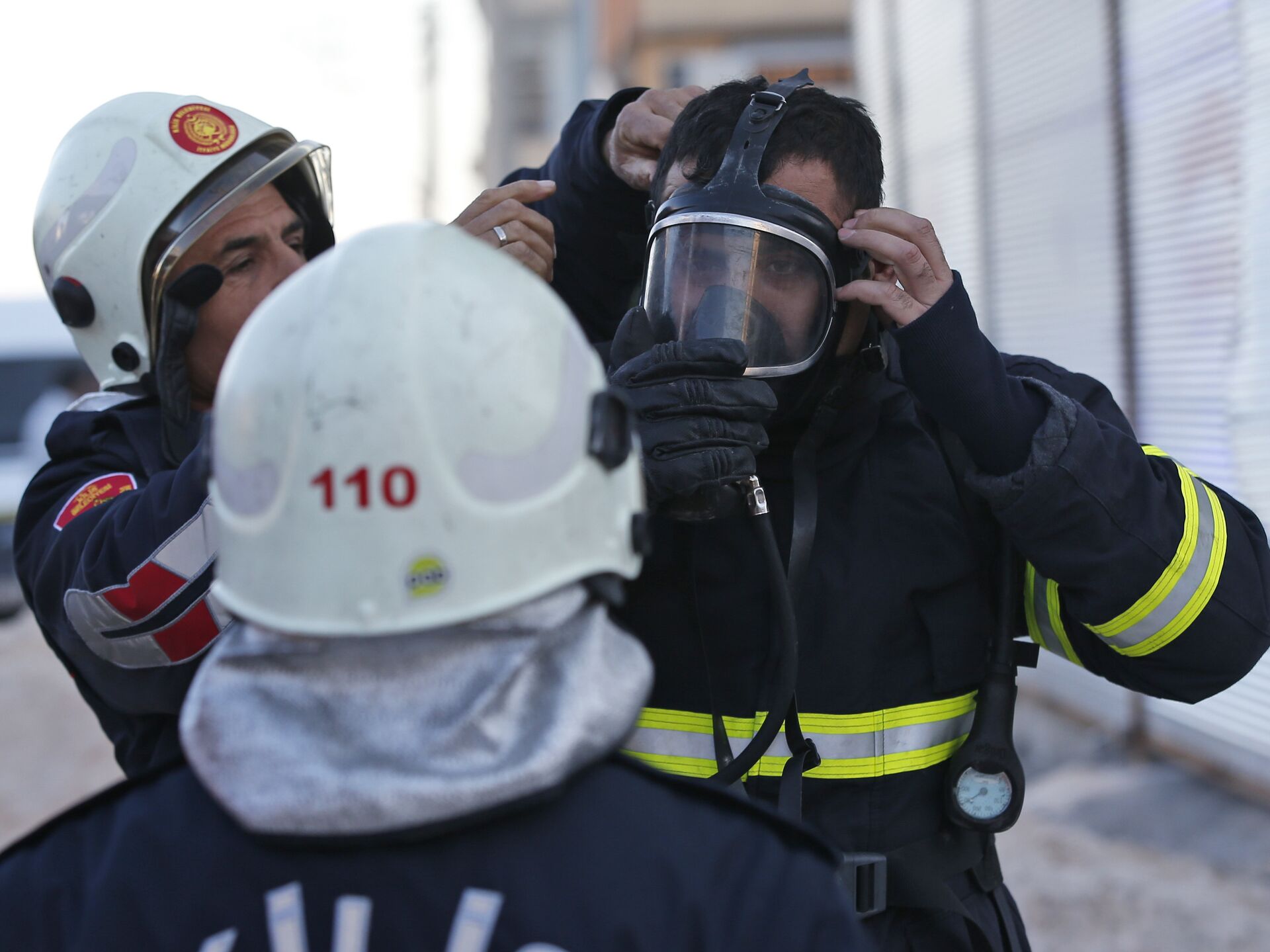 © AP Photo / Lefteris PitarakisТурецкие пожарные работают на месте ракетной атаки в пограничном городе Килис, Турция. 30 января 2018