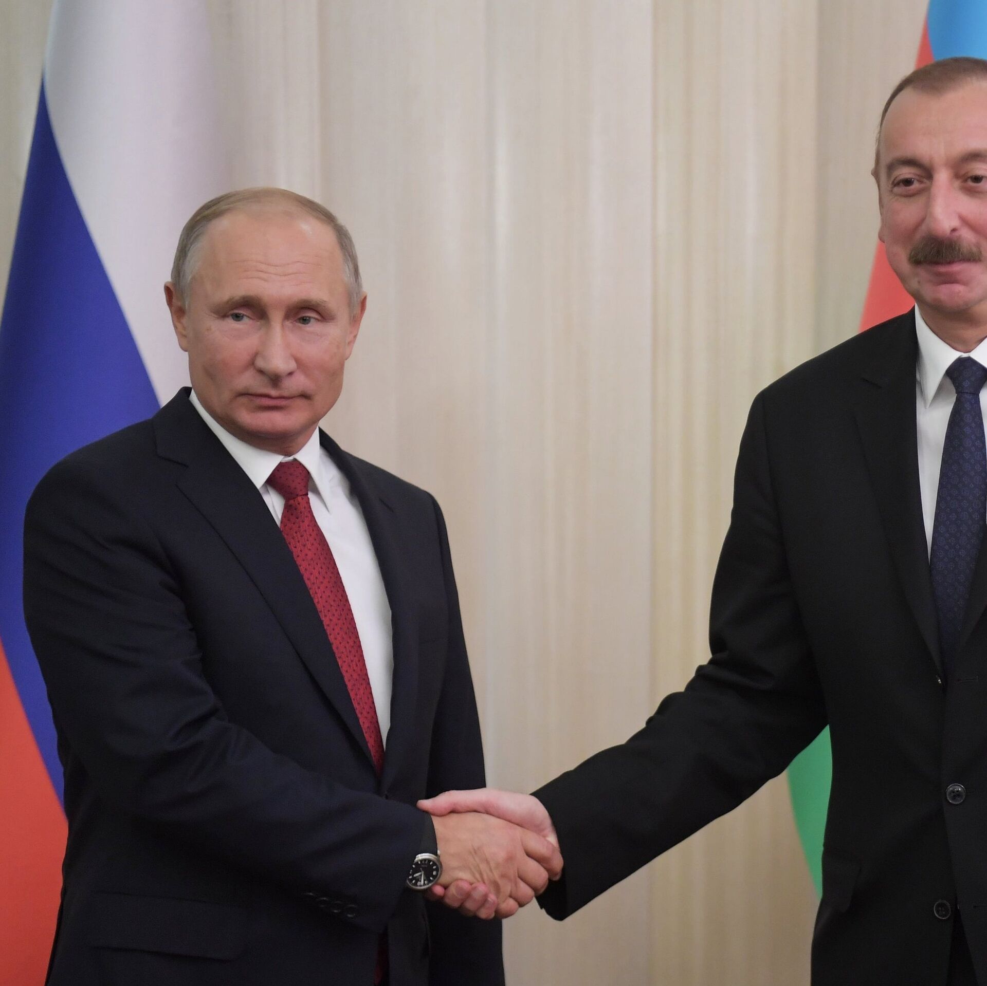 © РИА Новости / Сергей Гунеев | Перейти в медиабанкПрезидент РФ Владимир Путин и президент Азербайджана Ильхам Алиев. Архивное фото