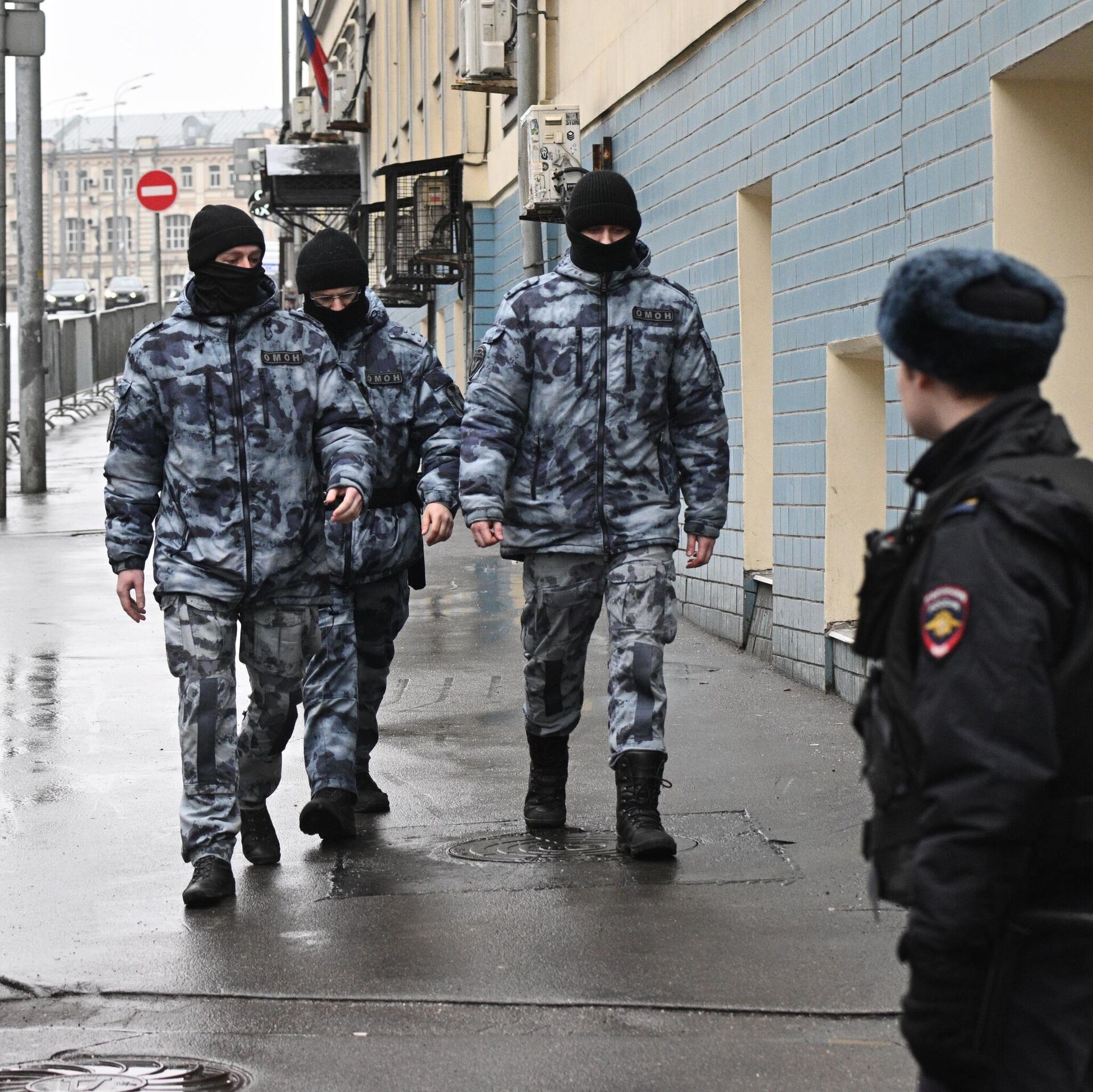 © РИА Новости / Кирилл Зыков | Перейти в медиабанкСотрудники ОМОНа и полиции у Басманного суда Москвы, куда доставят подозреваемых в совершении теракта в подмосковном "Крокус Сити Холле"