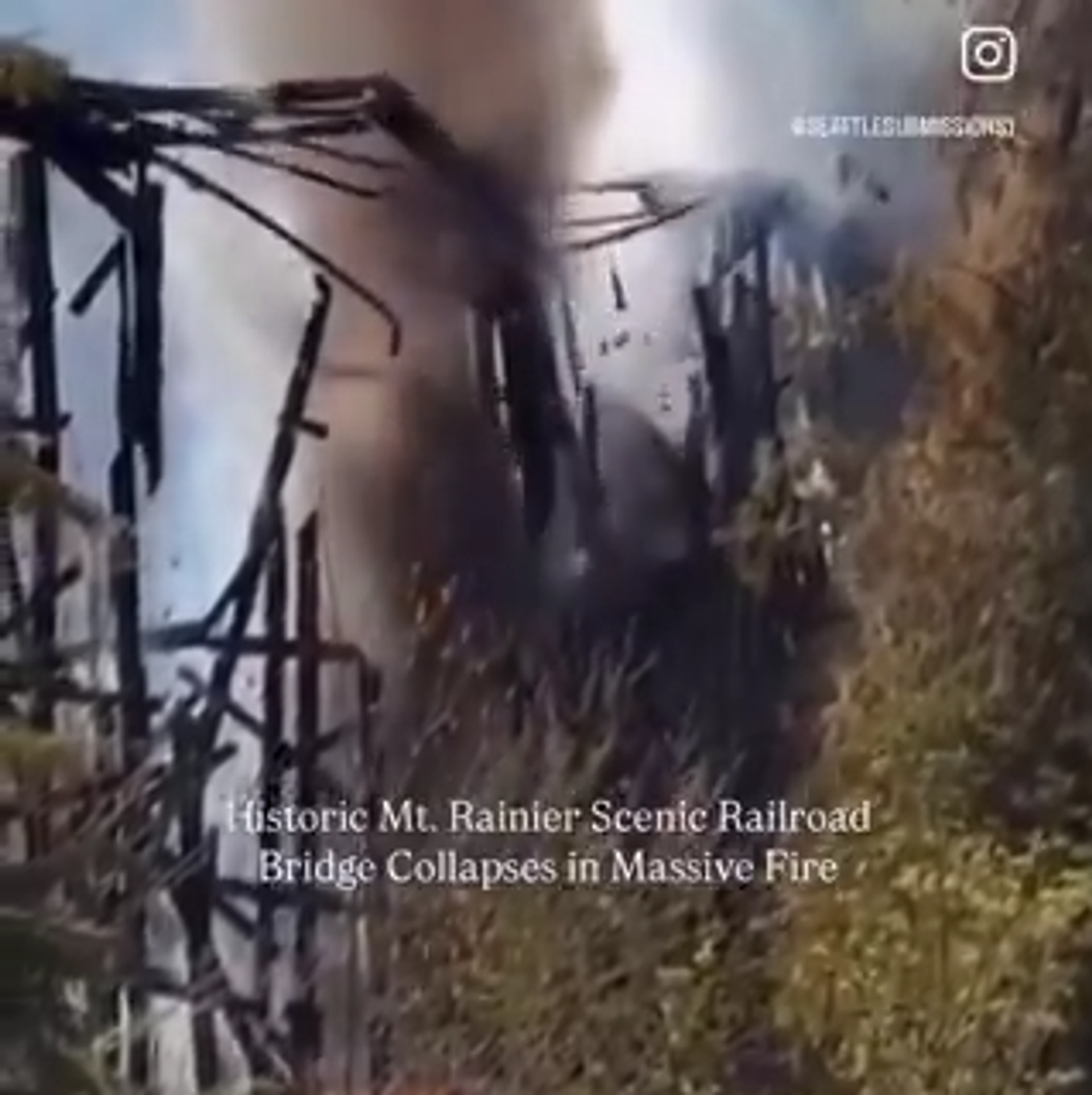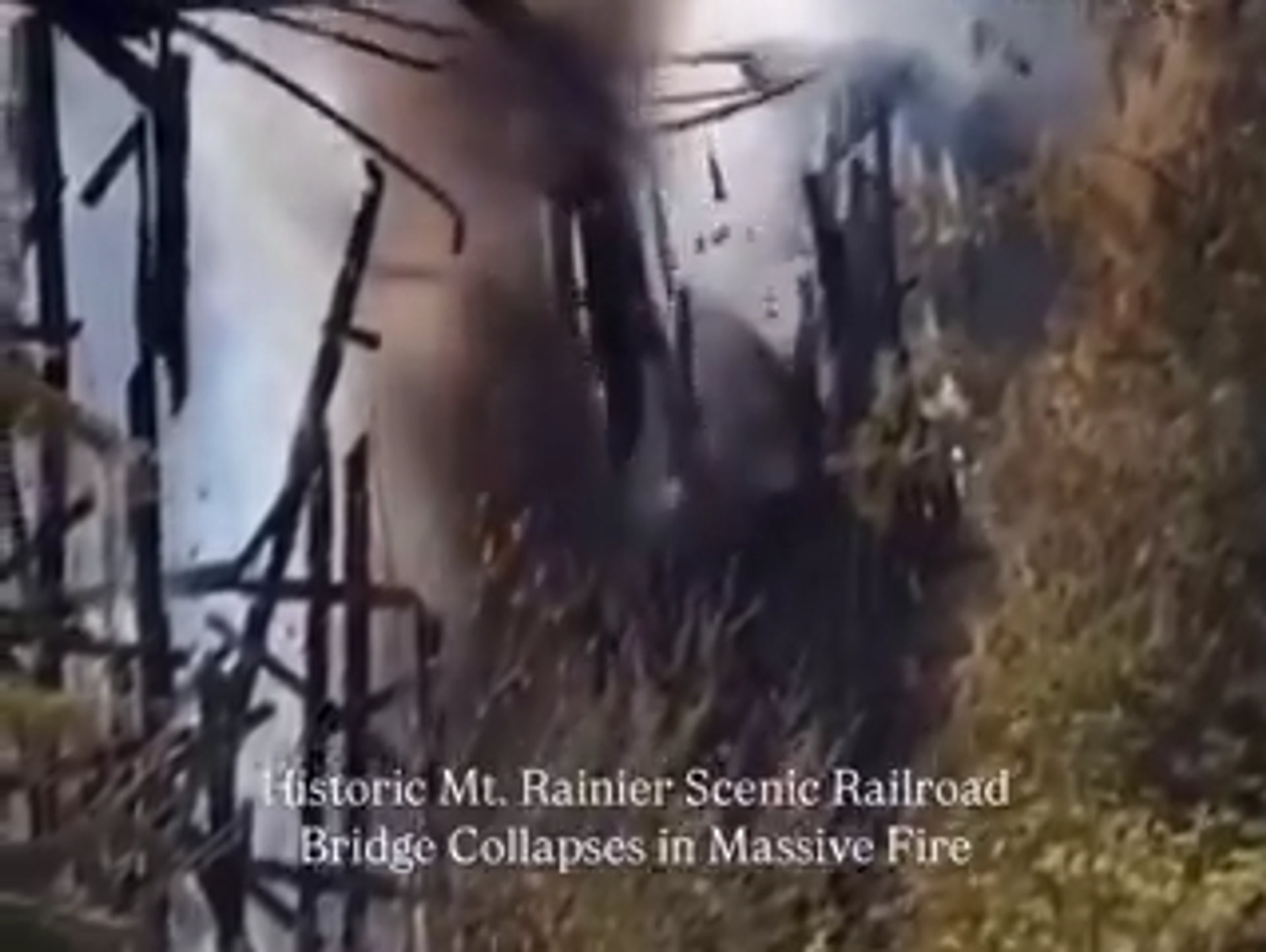 28-пролетная переправа, расположенная между Минералом и Мортоном, сгорела дотла, пока пожарные добирались до нее через лес. Власти считают, что мост подожгли.