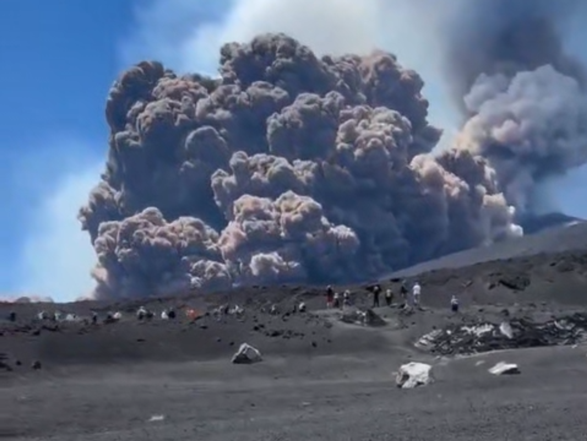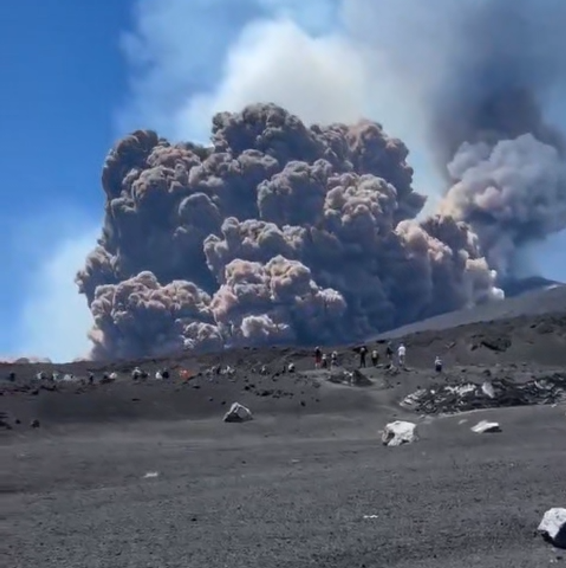 В Сети начали распространяться кадры с места событий. На видео туристы убегают от вулкана, а над ним поднимается большое грибовидное облако. По словам очевидцев, перед началом извержения были ощутимы вулканические толчки.