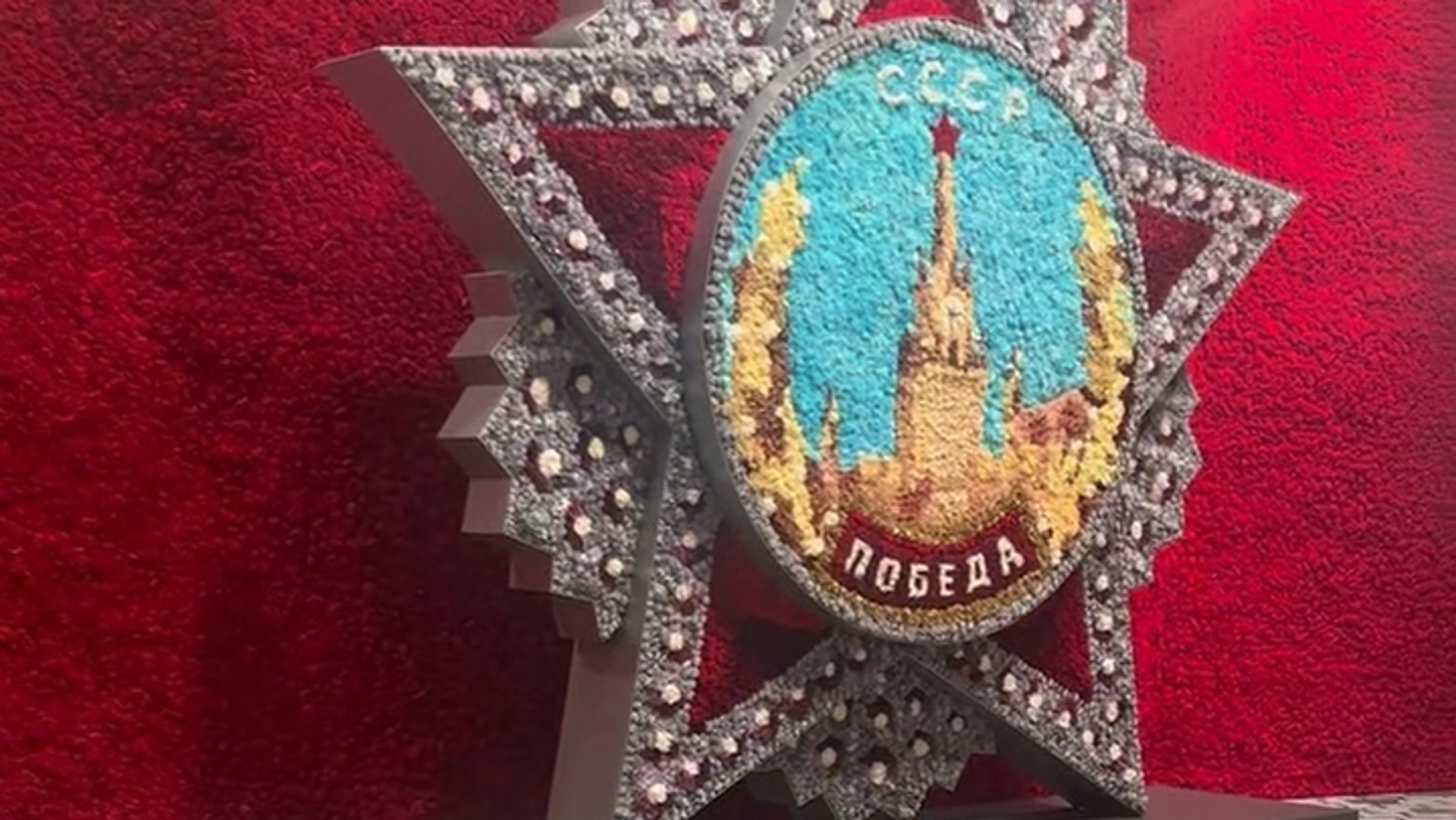 Центральным элементом композиции стал орден "Победа". Над созданием панно трудились 80 человек. На изготовление ушло 72 часа. Чтобы оформить стену, флористам понадобилось более 200 тысяч живых цветов, отмечает "Петербургский дневник".
