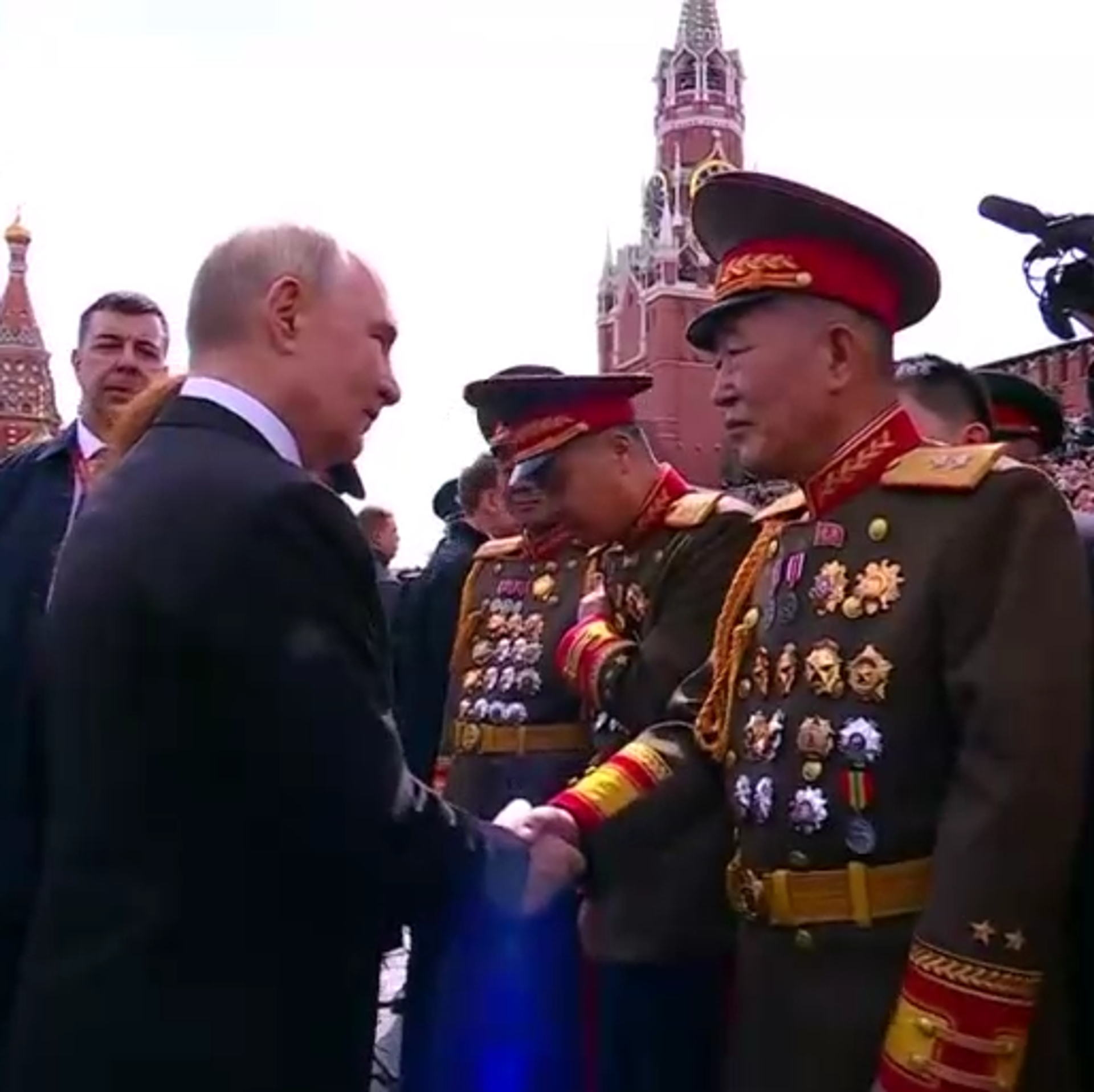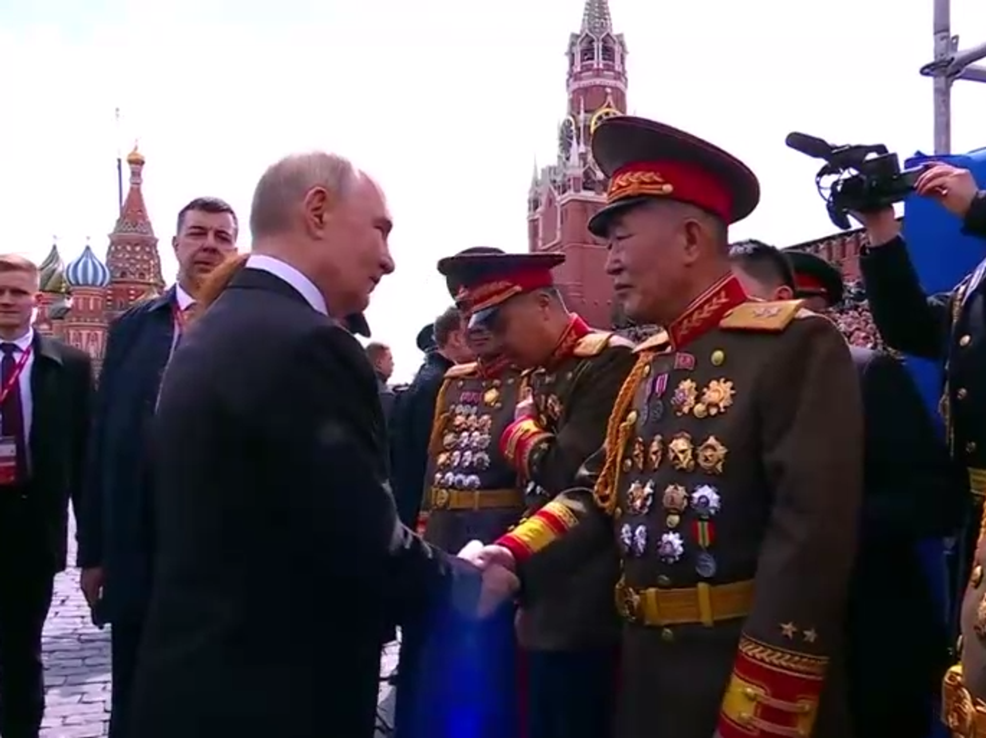 © Фото : Кадр видеотрансляцииПутин и военные КНДР