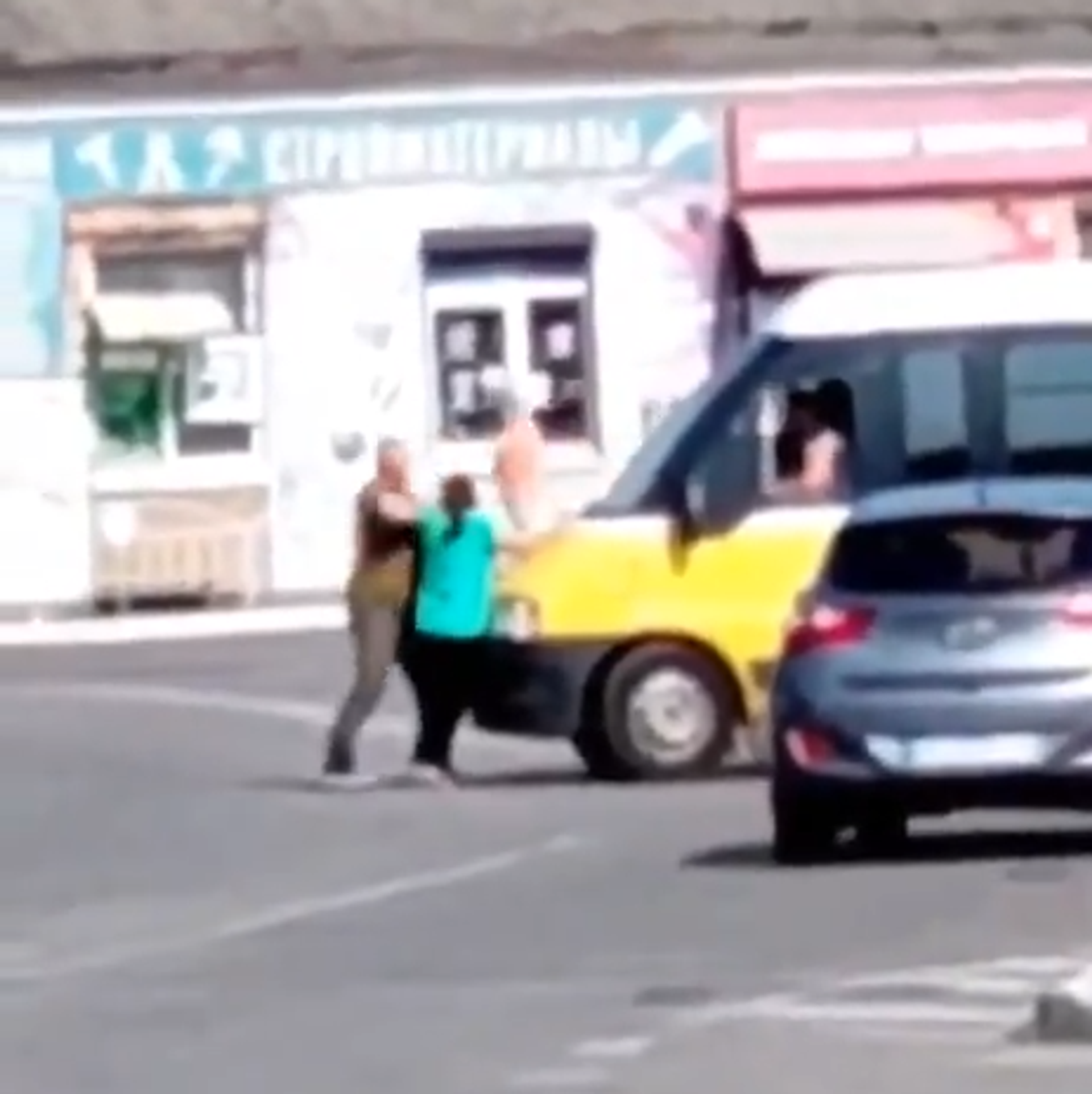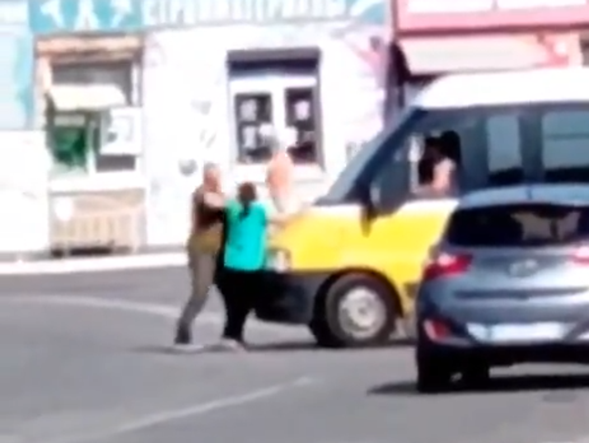 На опубликованных кадрах видно, как она препятствует движению автомобиля, откуда выходит мужчина и отталкивает ее, после чего женщина без сознания падает на асфальт.