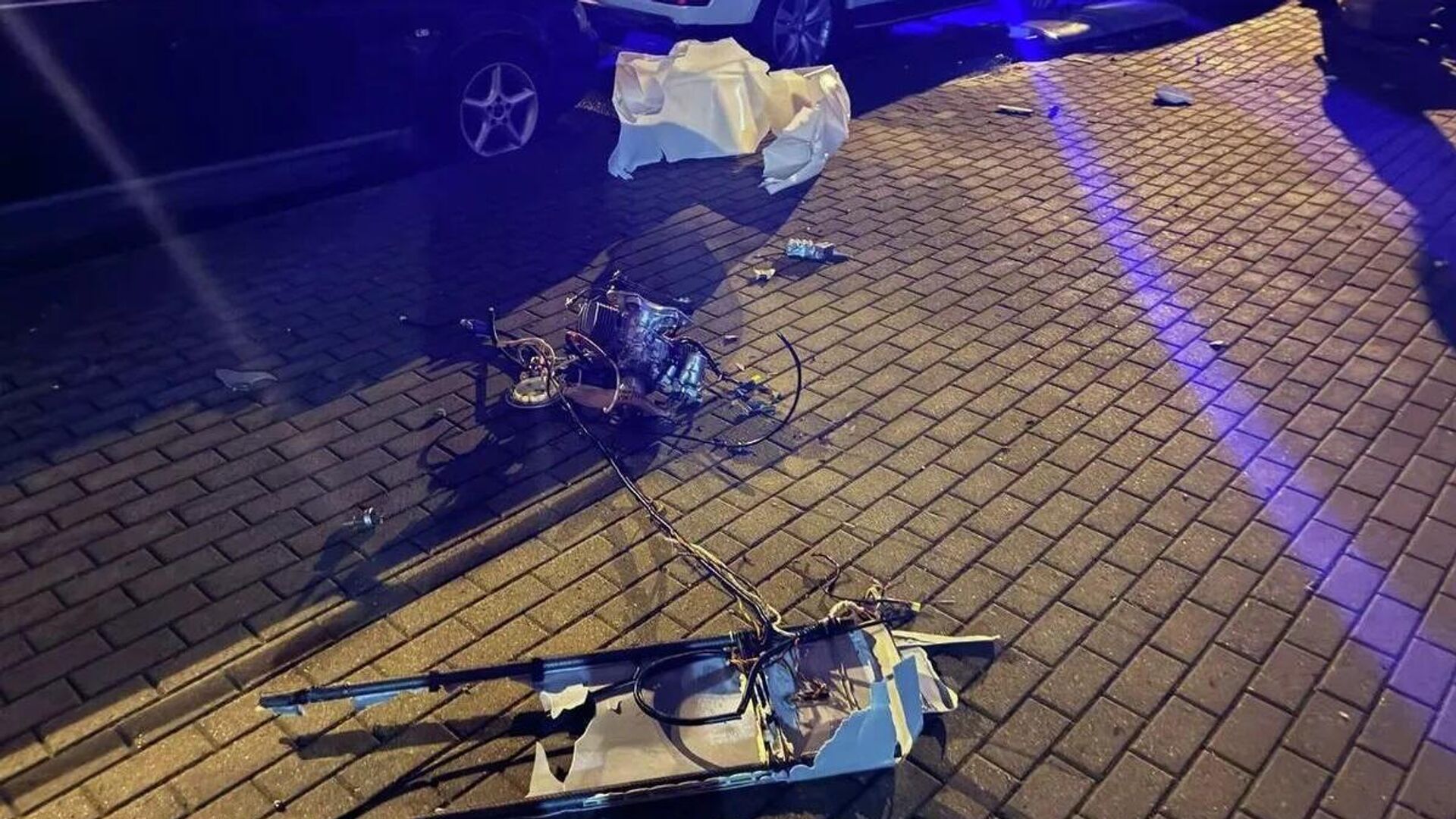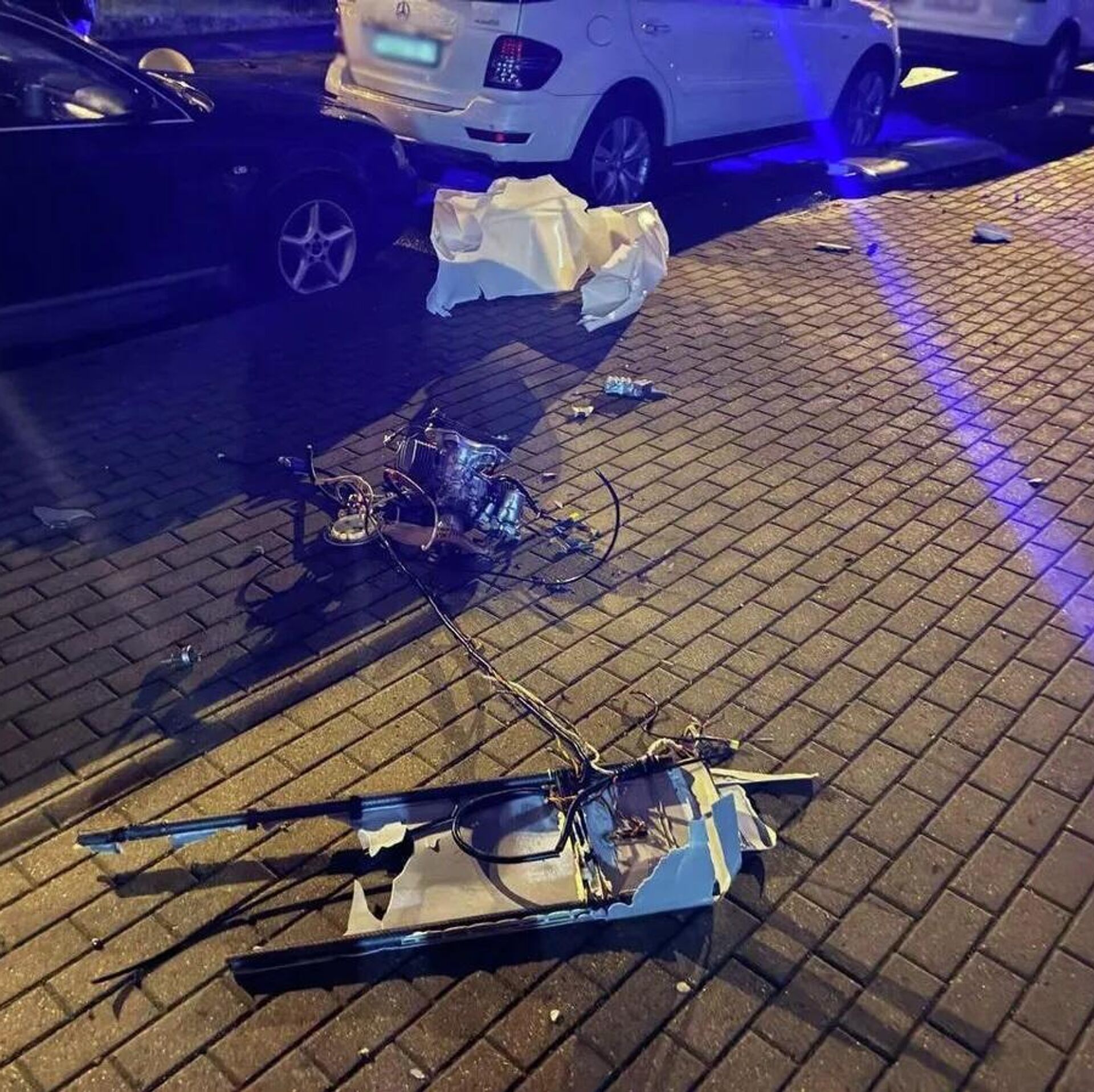 "Предварительно установлено, что ночью 29 июля беспилотный летательный аппарат, который был обнаружен Министерством обороны и подавлен средствами радиоэлектронной борьбы упал без детонации во дворе дома №72 по улице Матусевича. Обломки беспилотника повредили несколько припаркованных автомобилей и приземлились на прилегающую к дому территорию", –